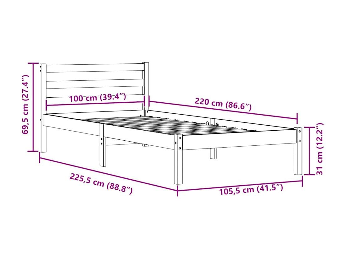Cadre de lit Blanc 220 x 100 cm Bois massif en pin