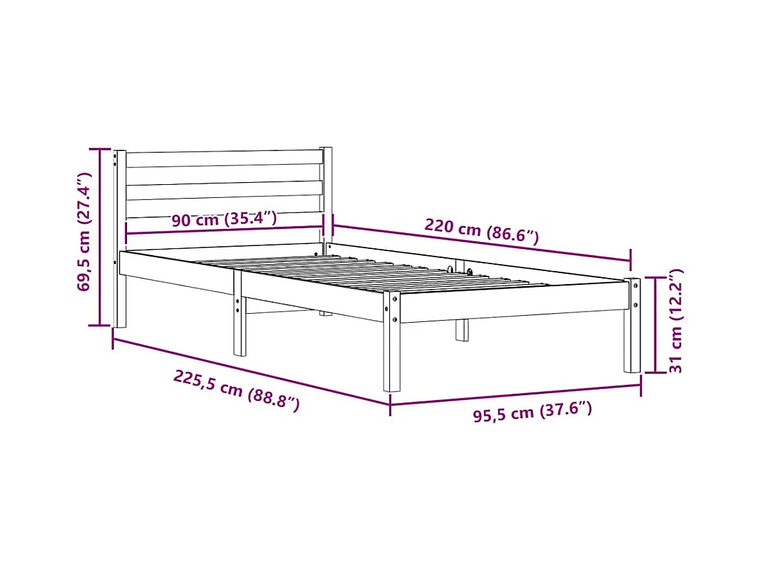 Cadre de lit Blanc 220 x 90 cm Bois massif en pin