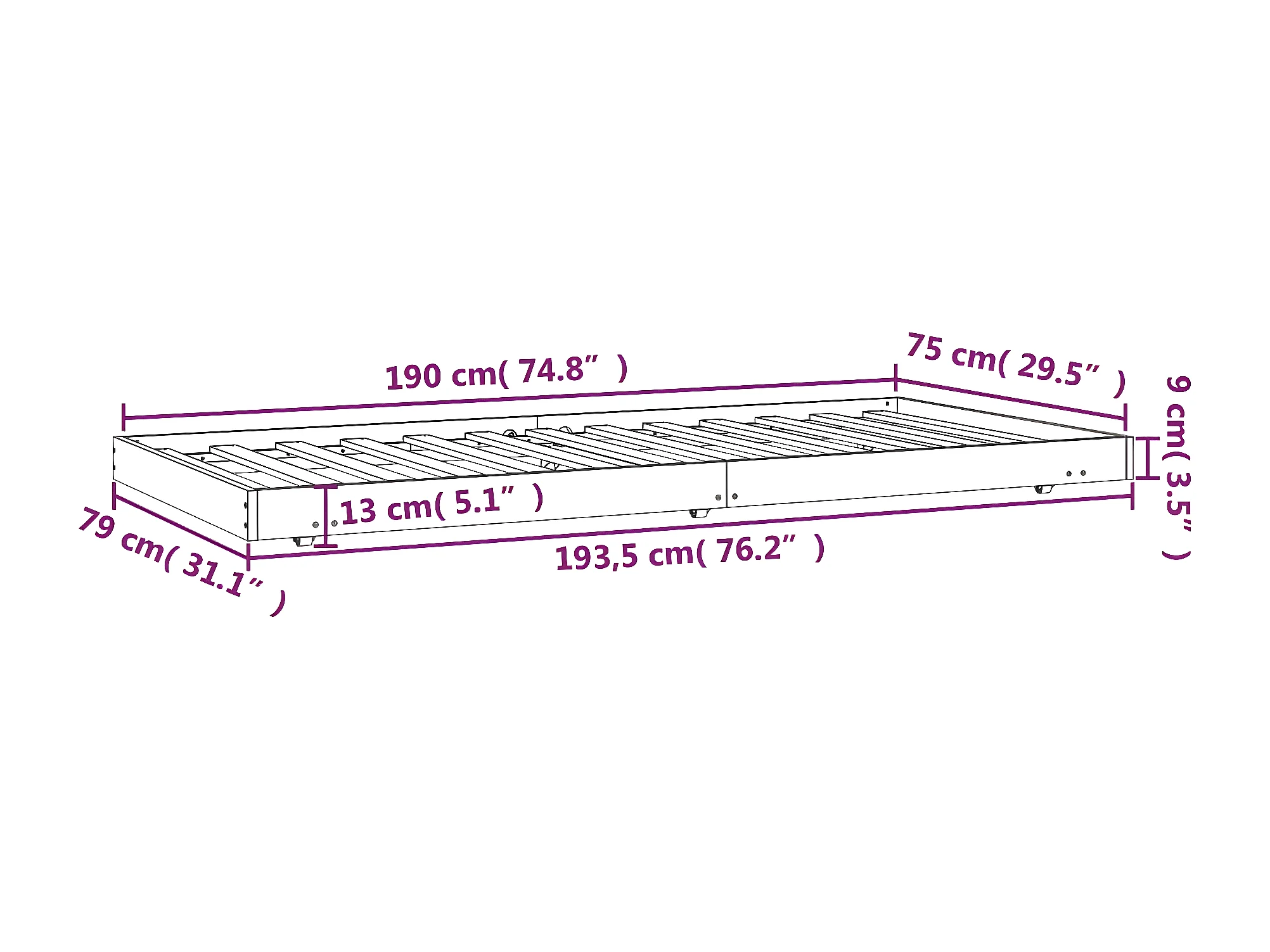 Cadre de lit Blanc 75x190 Bois de pin massif
