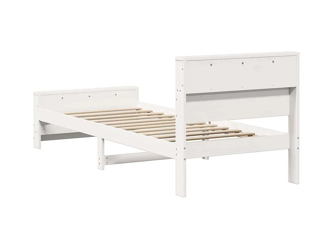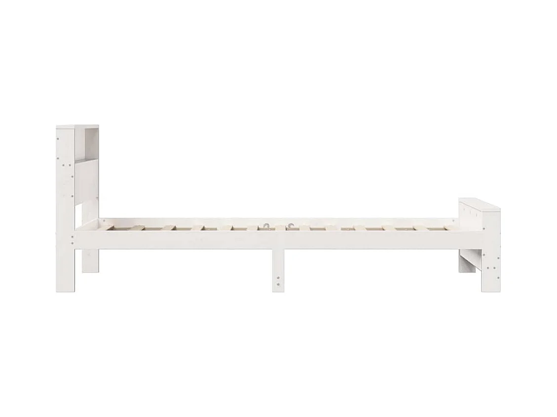 Lit bibliothèque sans matelas blanc 90x190cm bois de pin massif