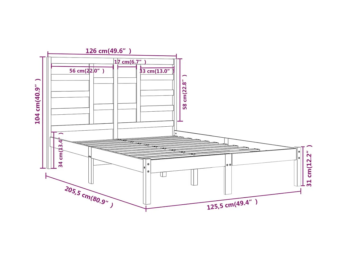 Cadre de lit sans matelas blanc bois massif 120x200 cm