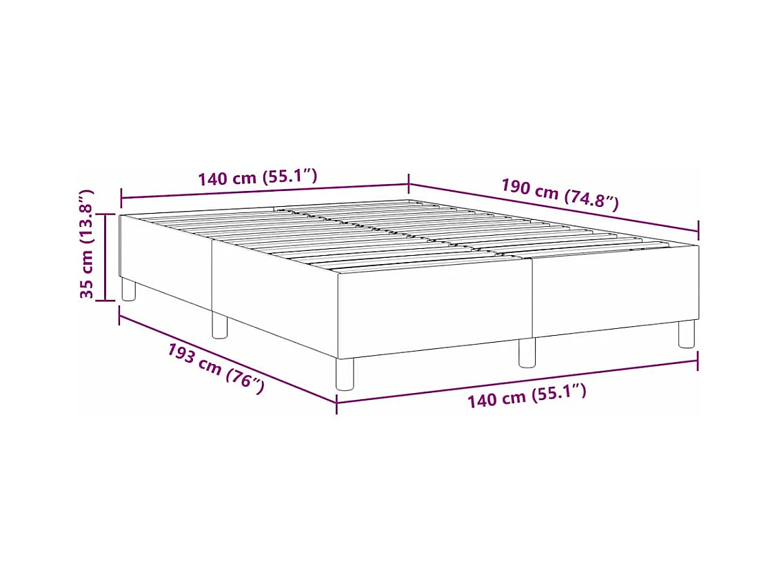 Cadre de lit avec matelas Bleu foncé 140 x 190 cm Velours