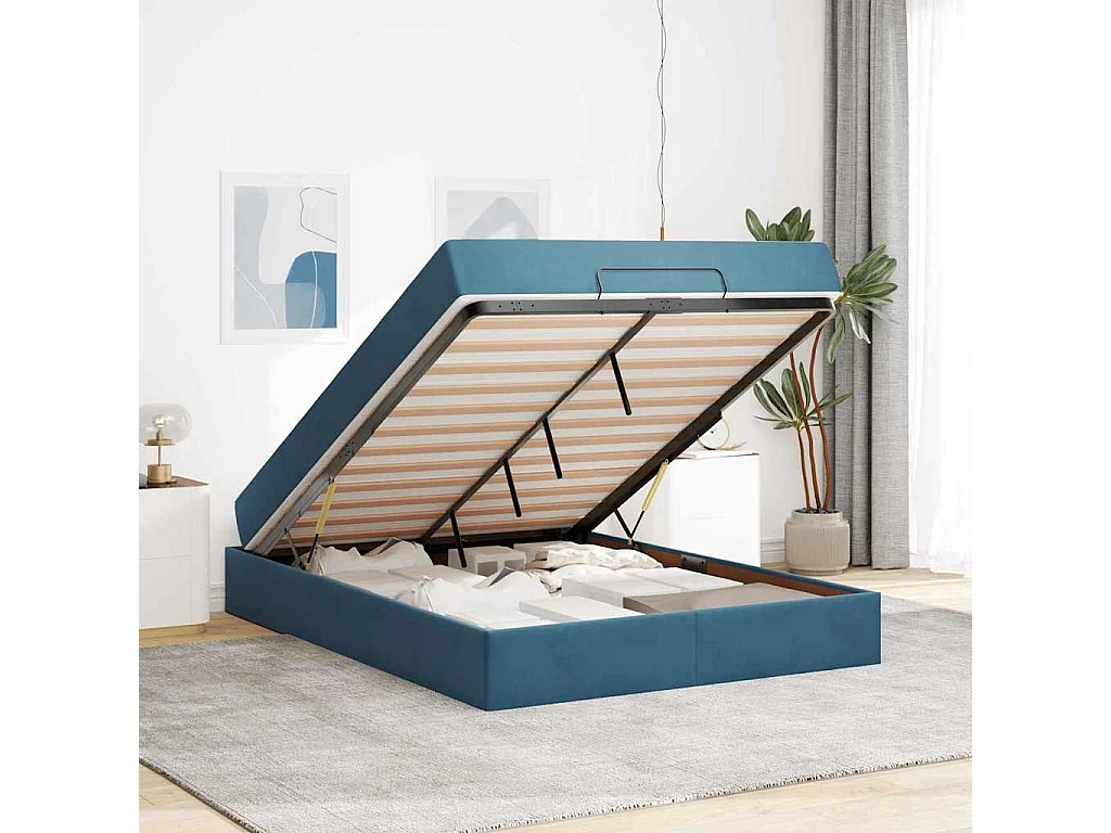 Cadre de lit ottoman avec matelas bleu foncé 160x200 cm velours