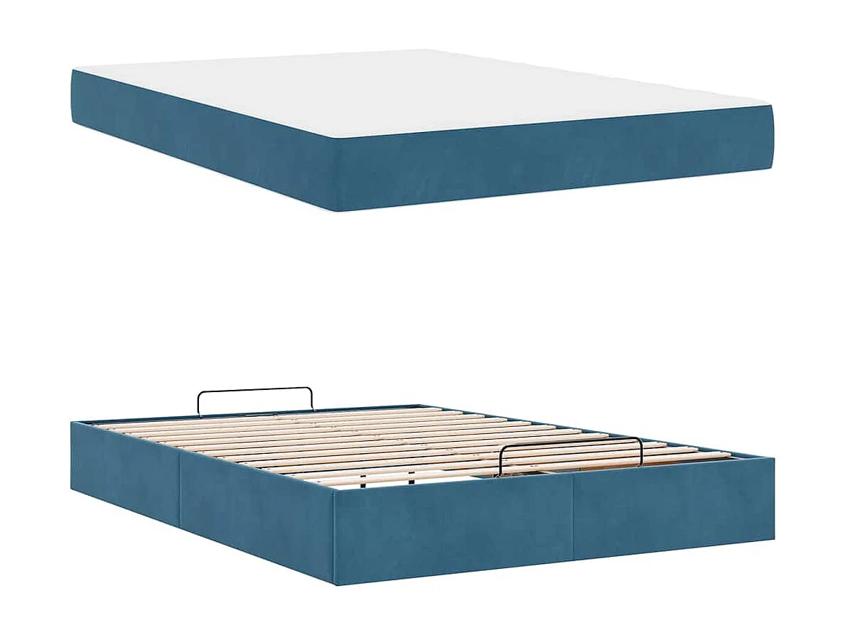 Sommier à lattes de lit et matelas Bleu foncé 160x200cm Velours