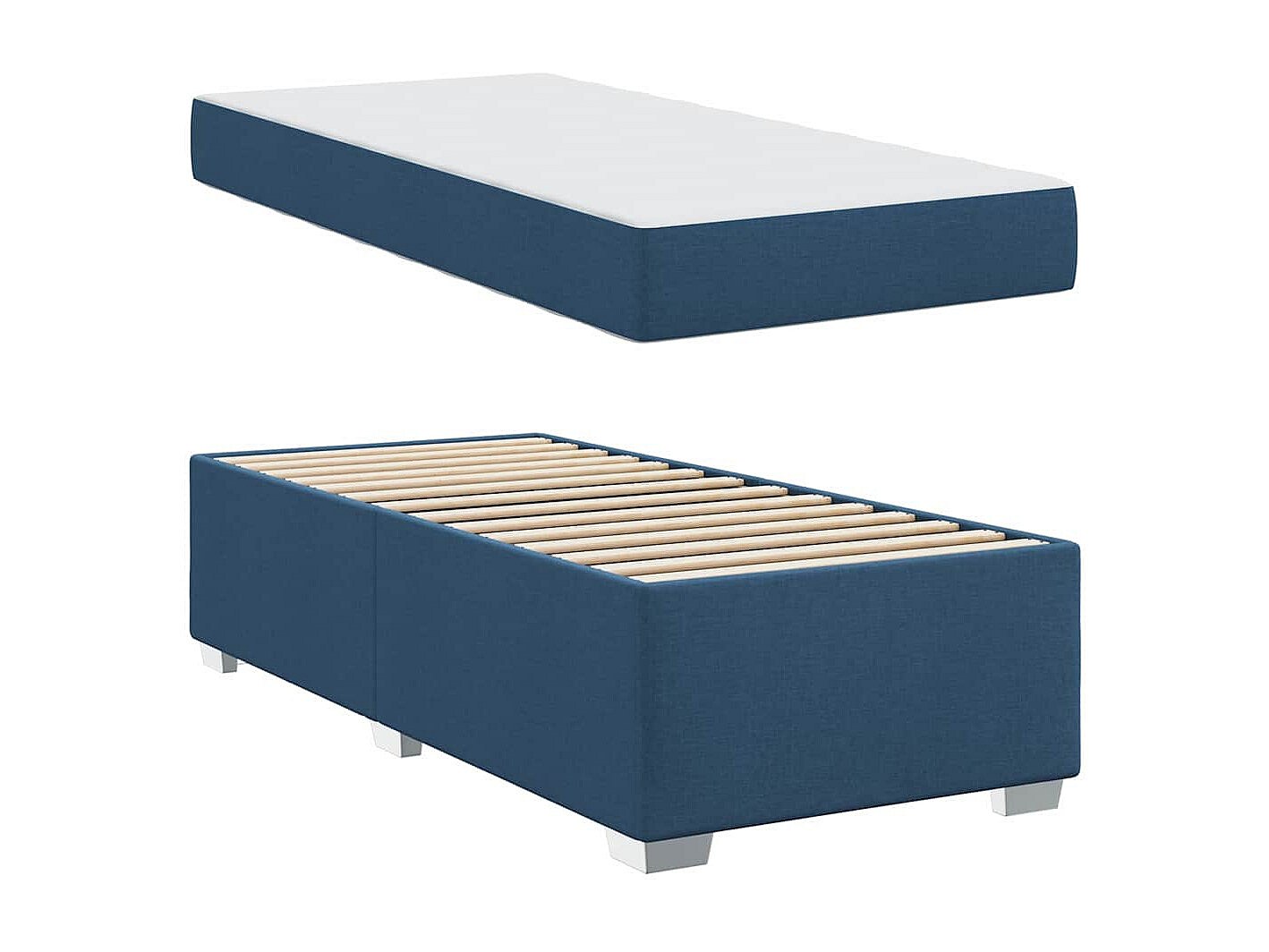 Cadre de lit avec matelas Bleu 90 x 200 cm tissu