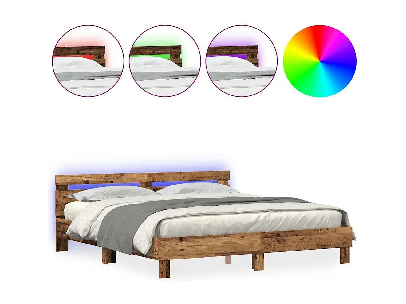 Cadre de lit avec LED sans matelas chêne marron 200x200 cm