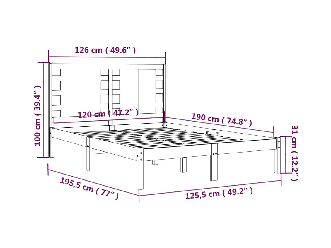 Cadre de lit sans matelas cire marron 120x190cm bois pin massif