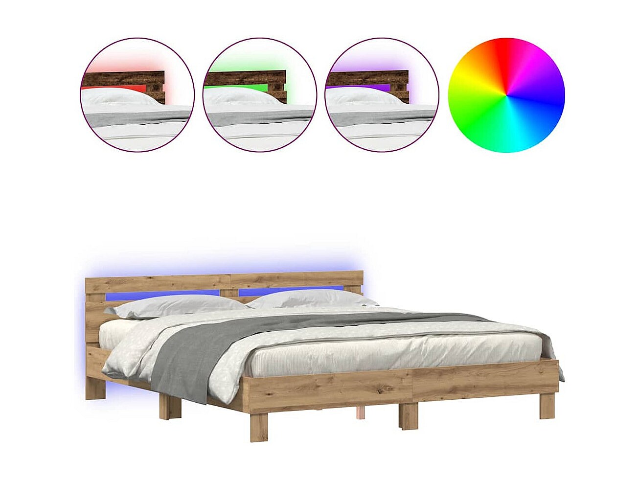 Lit double chêne sonoma 200x200 cm bois d'ingénierie FR42197