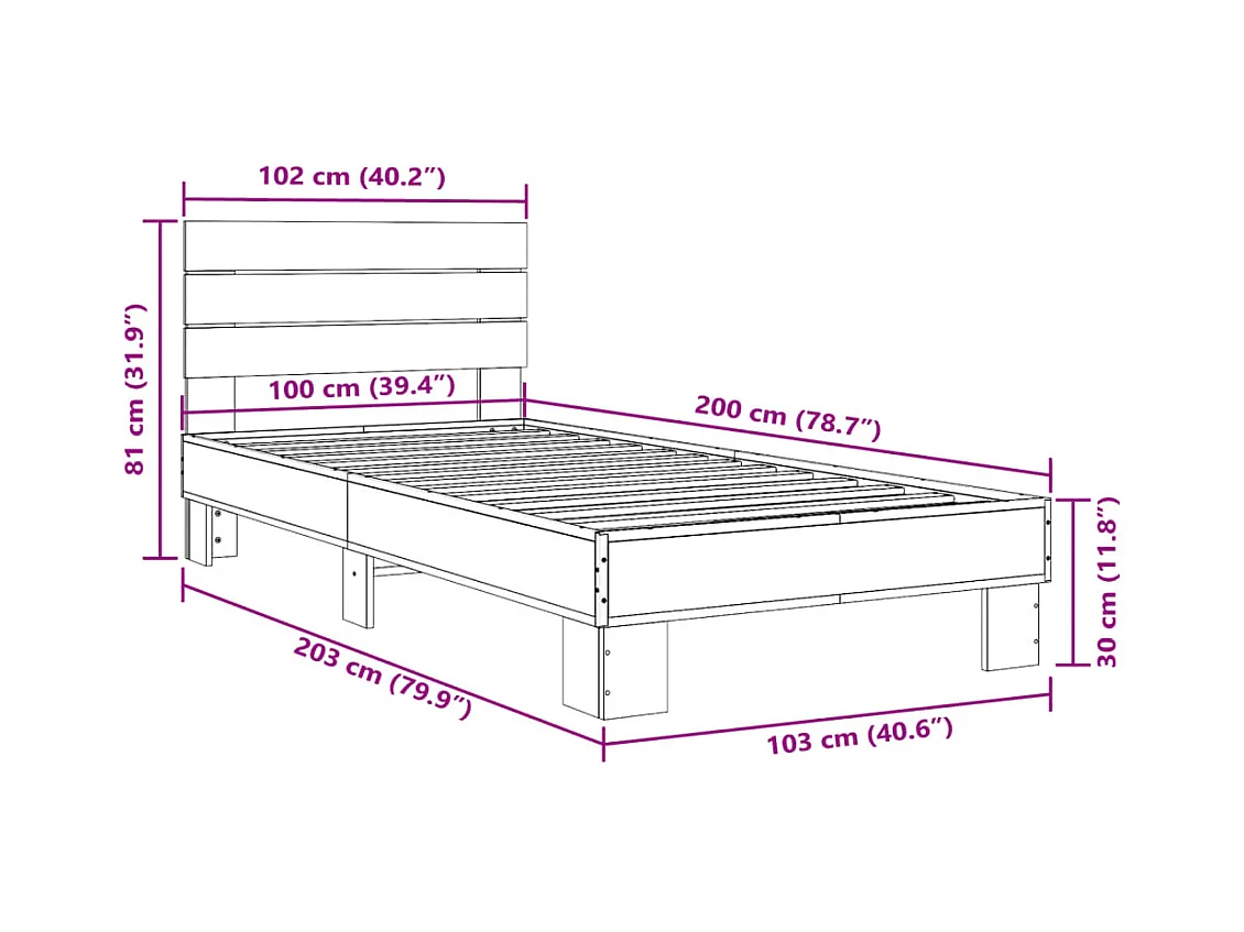 Cadre de lit sans matelas chêne sonoma 100x200 cm