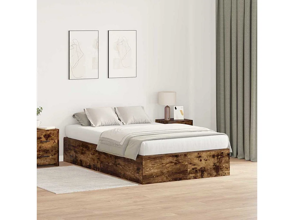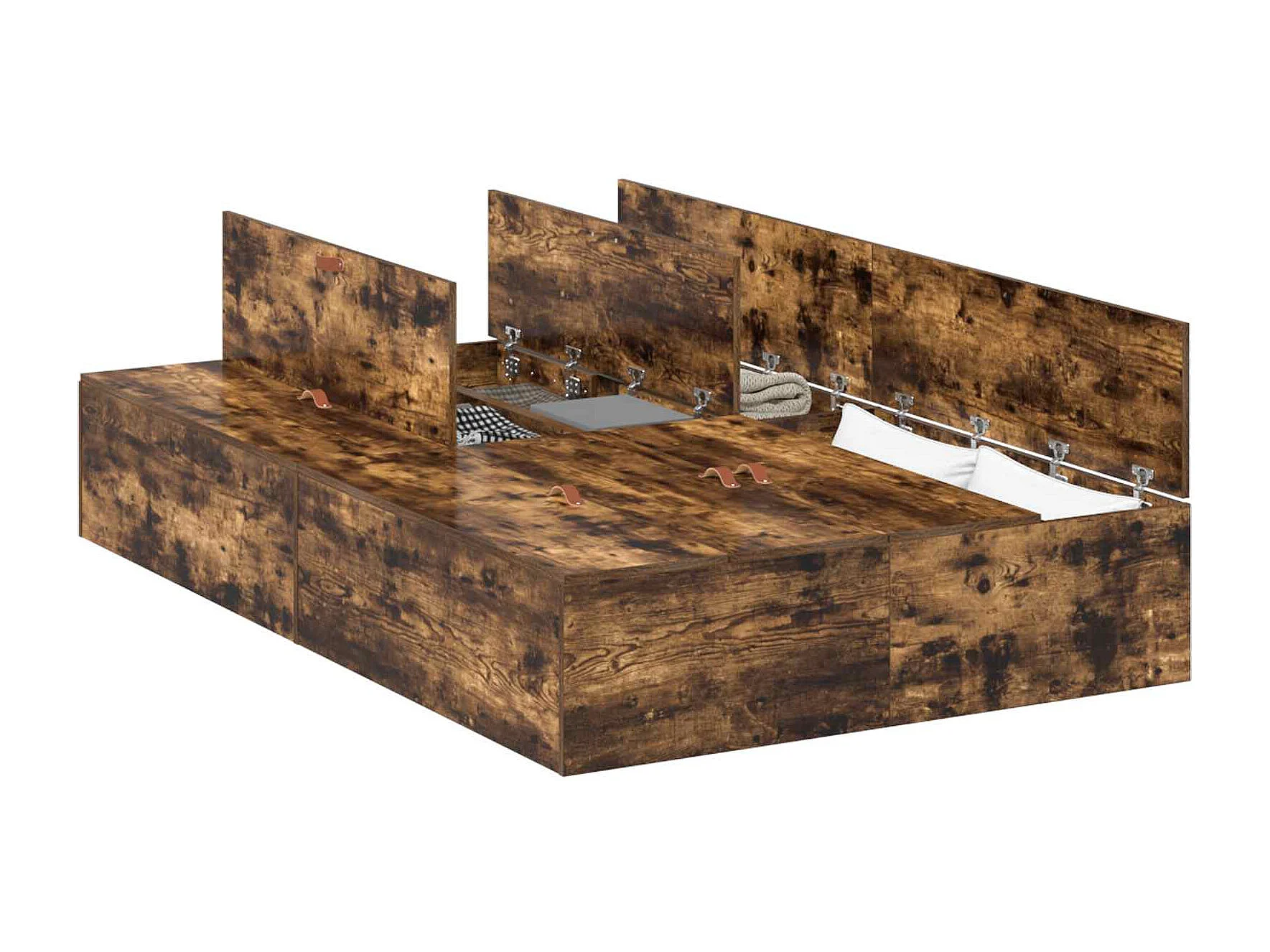 Cadre de lit avec rangement Chêne fumé 120 x 200 cm