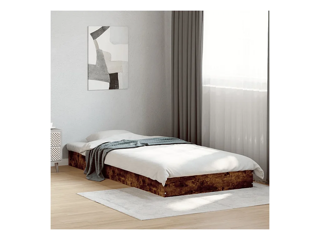 Cadre de lit sans matelas chêne fumé 75x190cm bois d'ingénierie