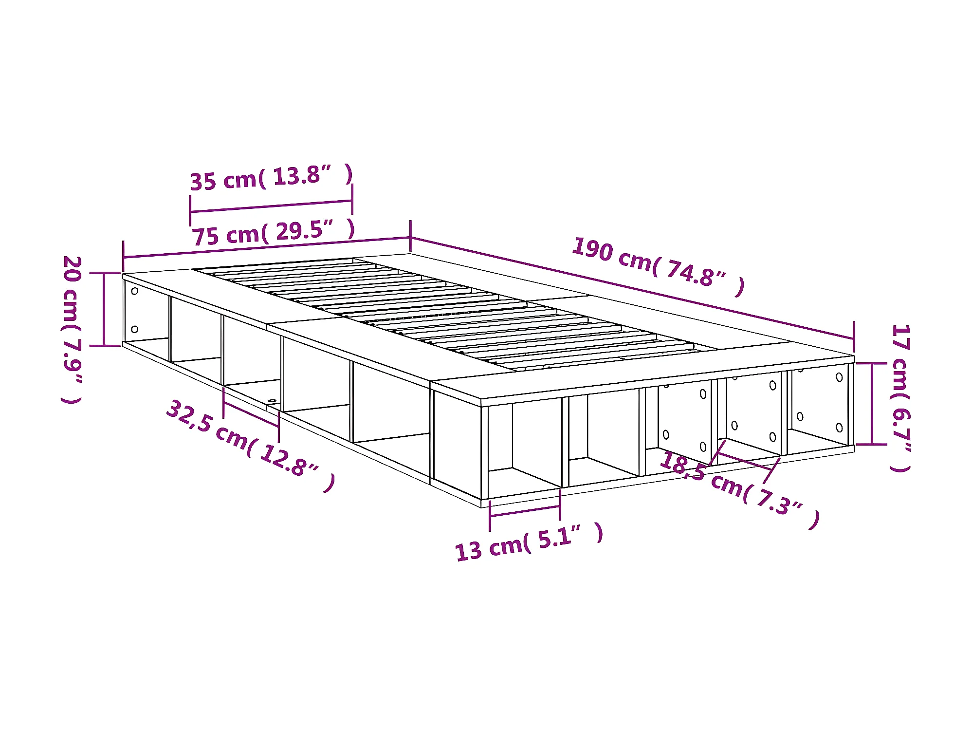 Cadre de lit chêne marron 75x190 bois d'ingénierie