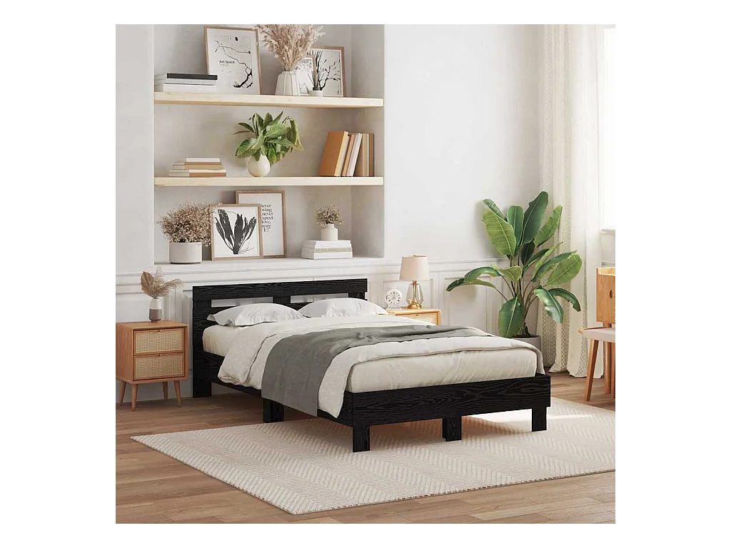 Lit double noir 120x190 cm bois d'ingénierie et métal FR92656