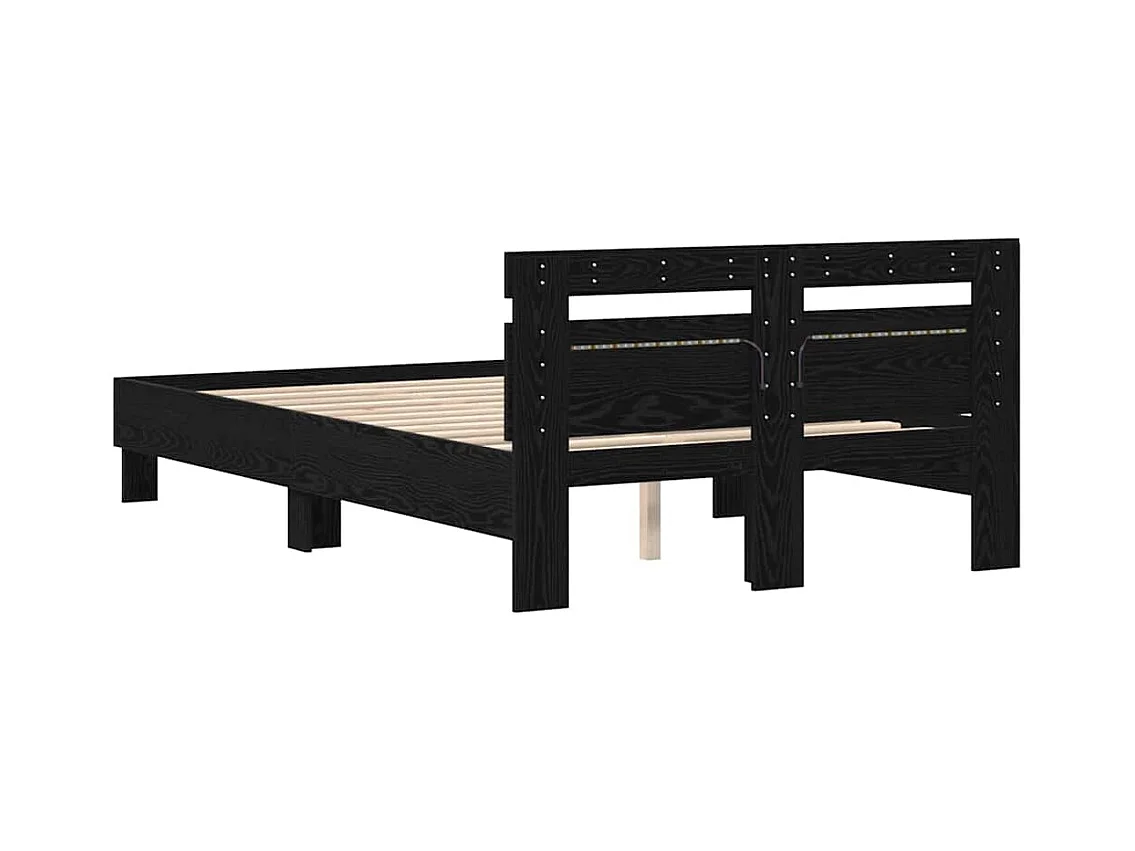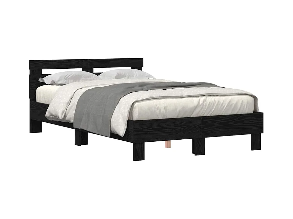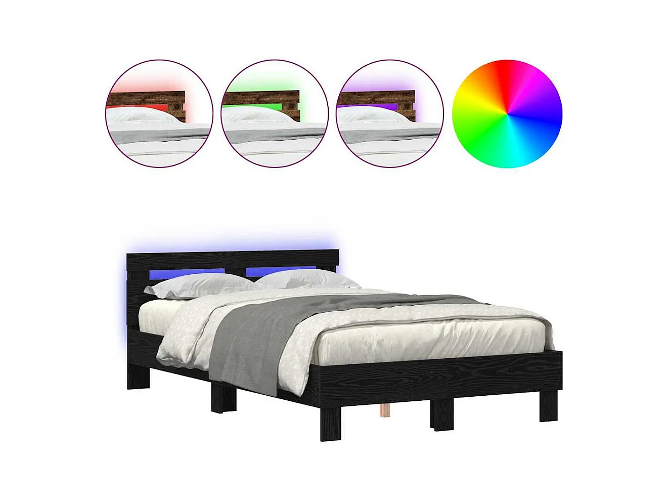 Lit double + tête de lit et LED noir 120x190 cm FR98220