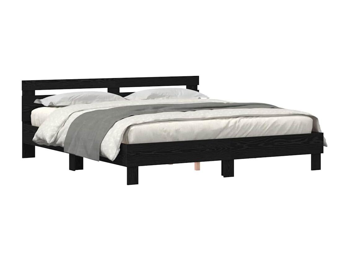 Lit double noir 200x200 cm bois d'ingénierie FR65073