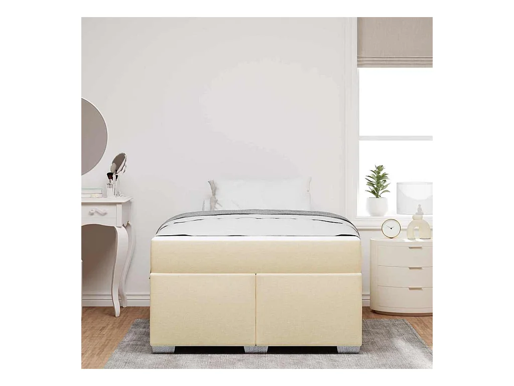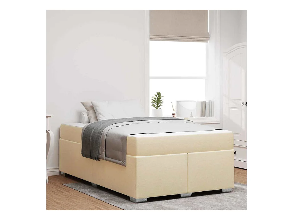 Cadre de lit avec matelas avec matelas Crème 120 x 200 cm tissu