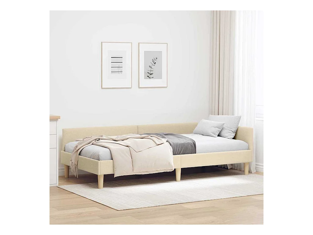 Cadre de lit d'angle Autre avec tête de lit Crème 90 x 200 cm