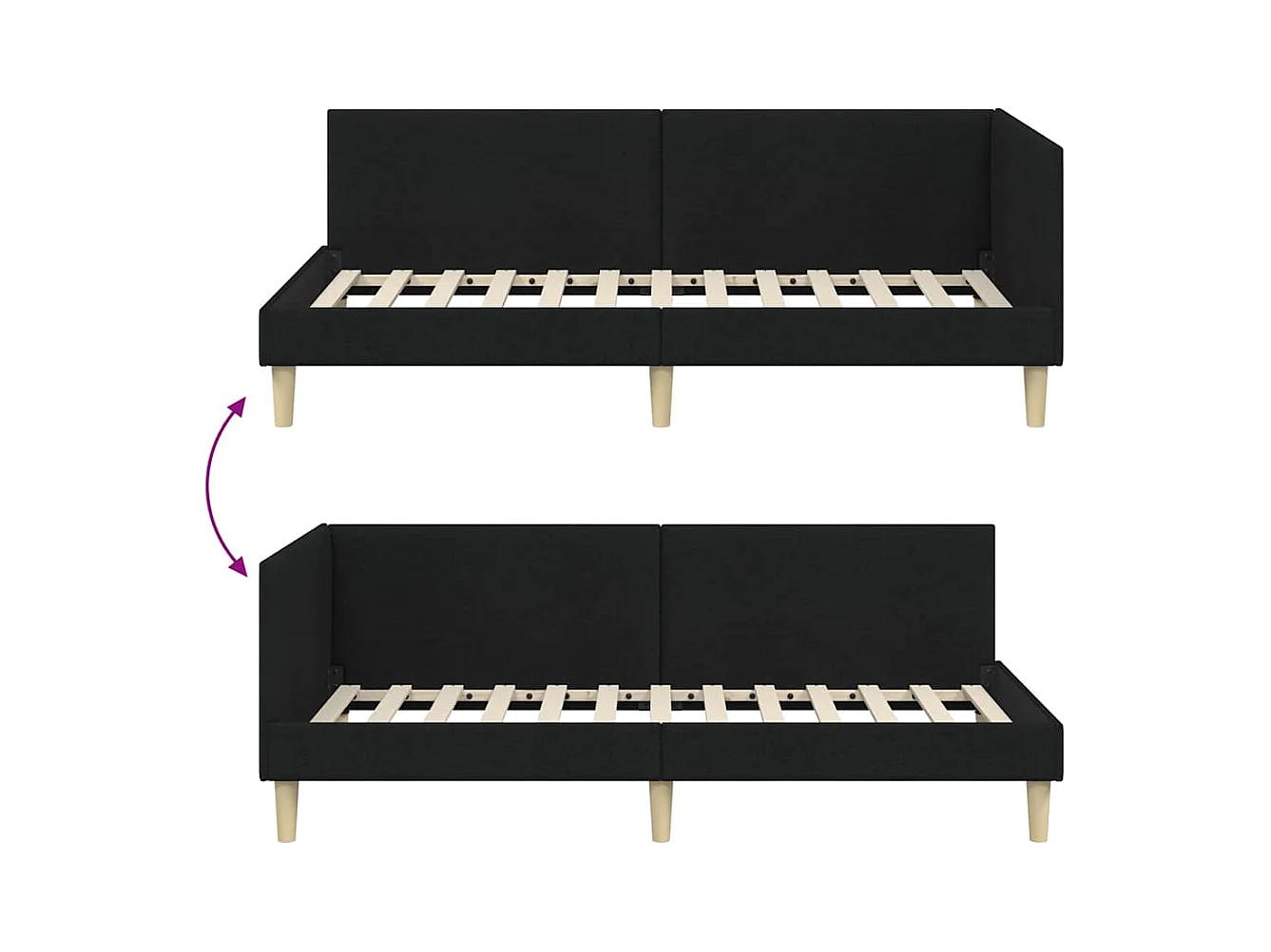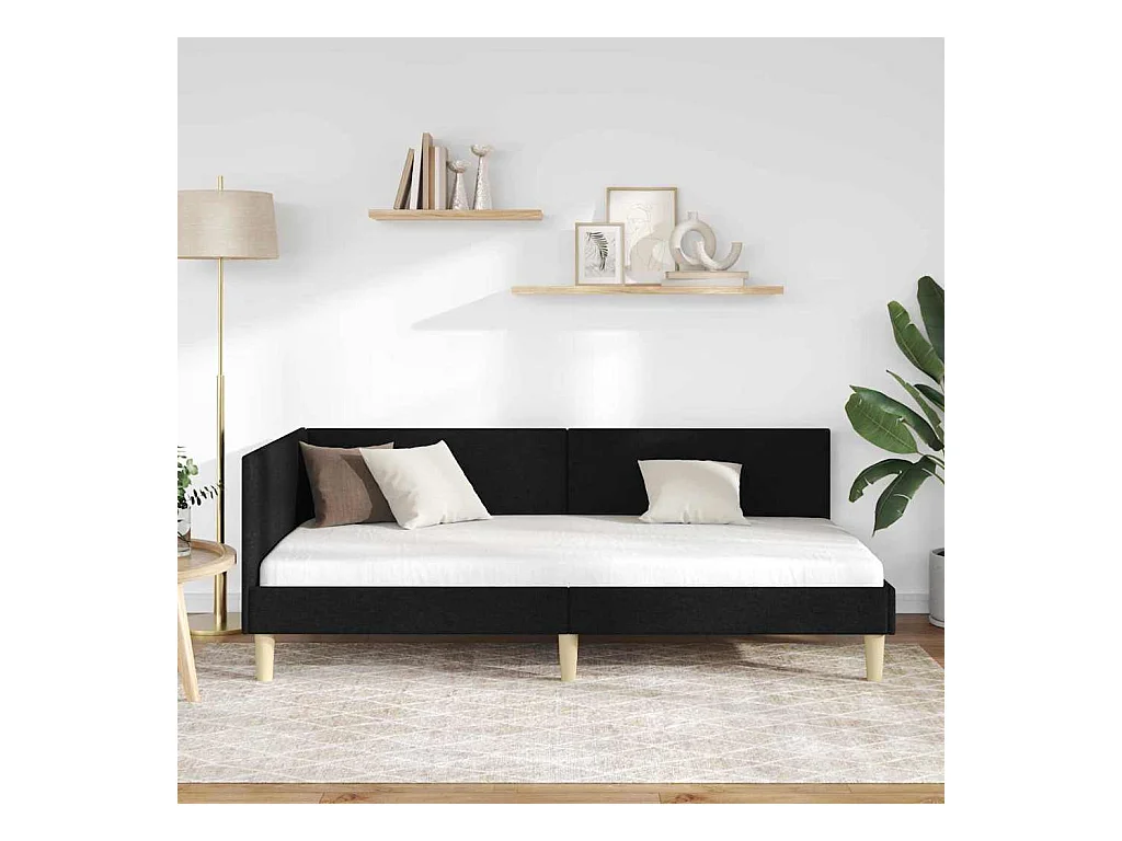 Cadre de lit d'angle Autre avec tête de lit Noir 100 x 200 cm