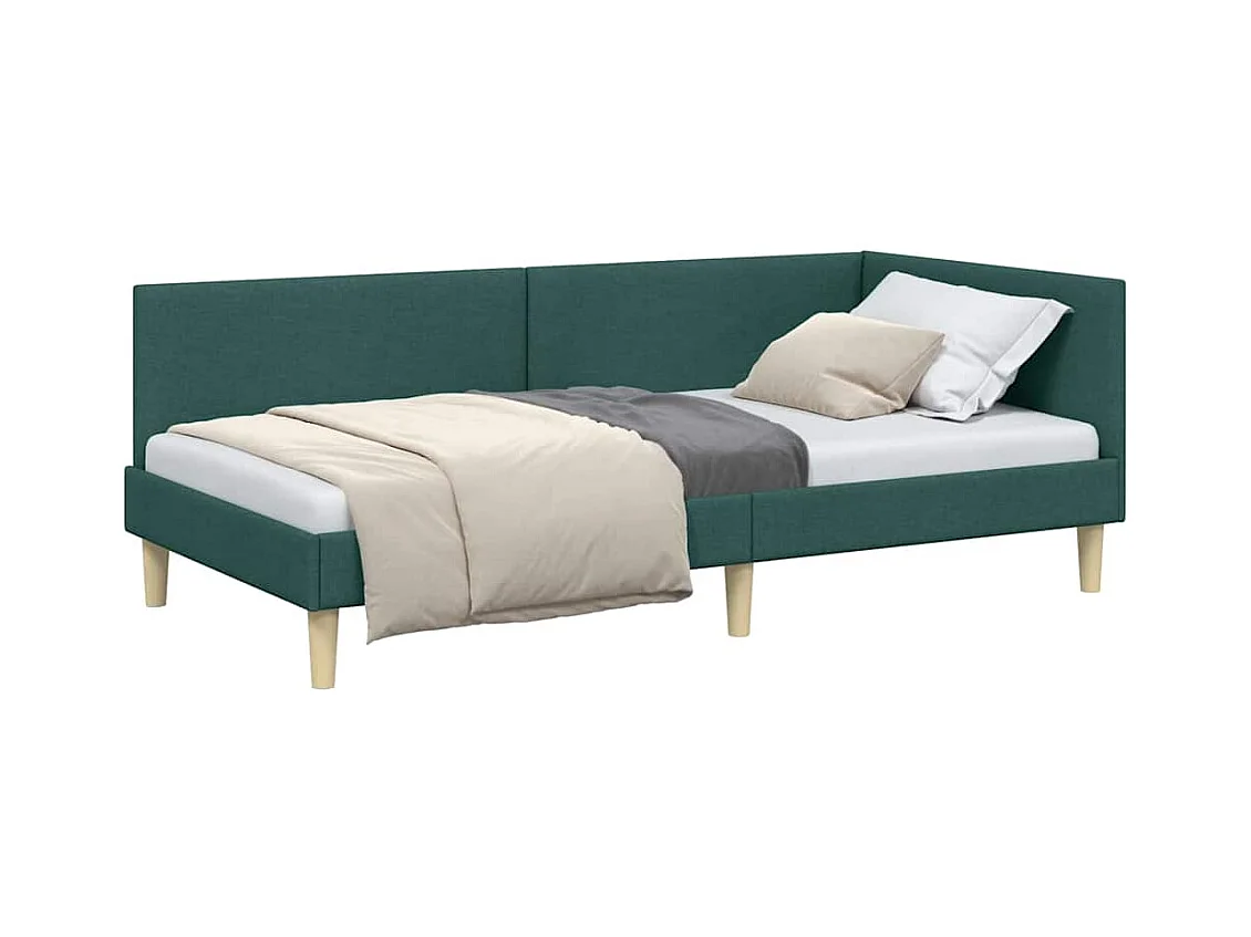 Cadre de lit d'angle Vert foncé 90 x 200 cm tissu