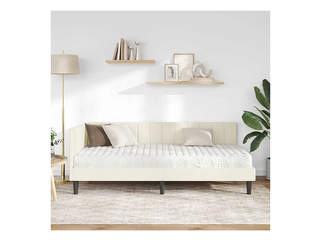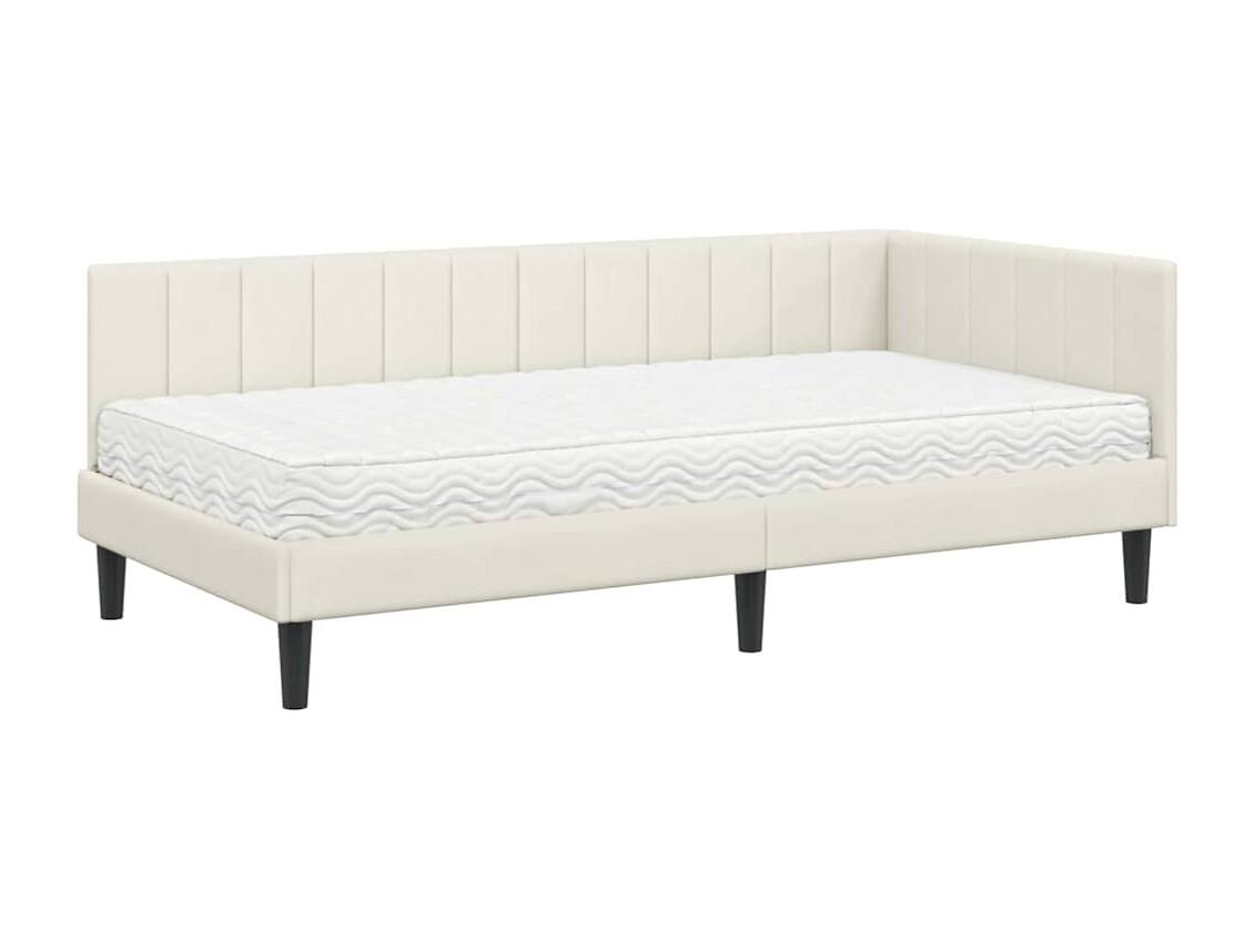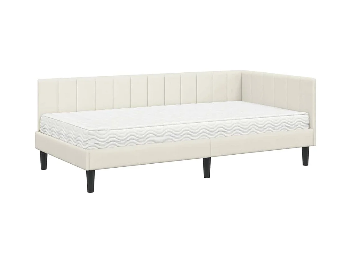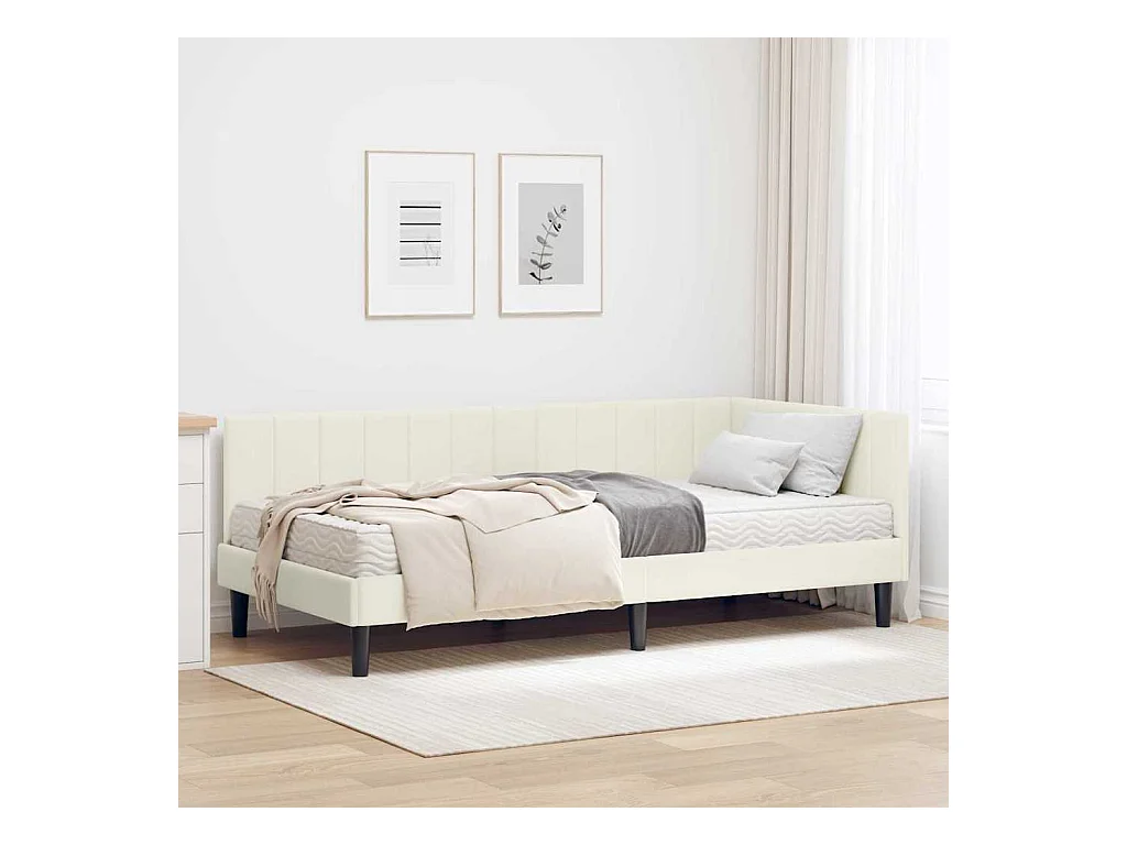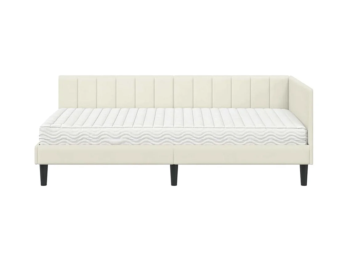 Cadre de lit d'angle avec matelas Crème 100 x 200 cm Velours