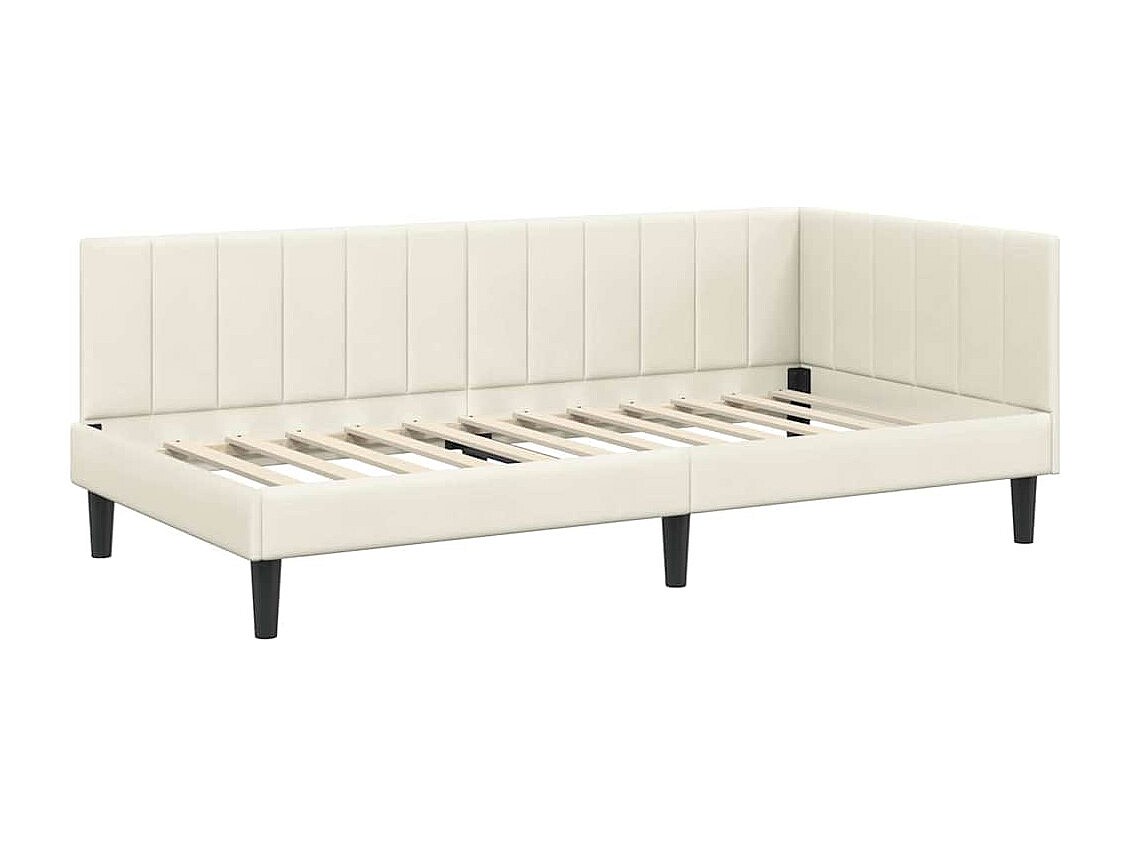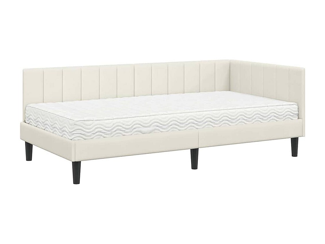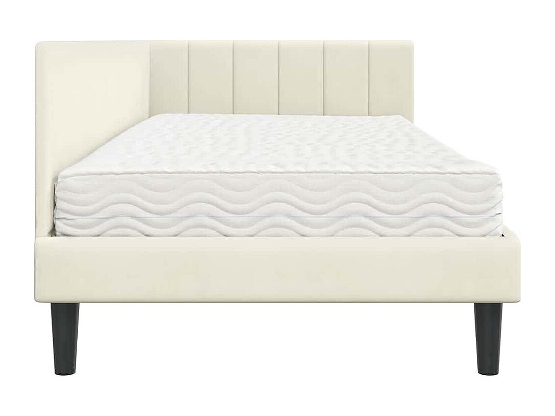 Cadre de lit d'angle avec matelas Crème 90 x 190 cm Velours
