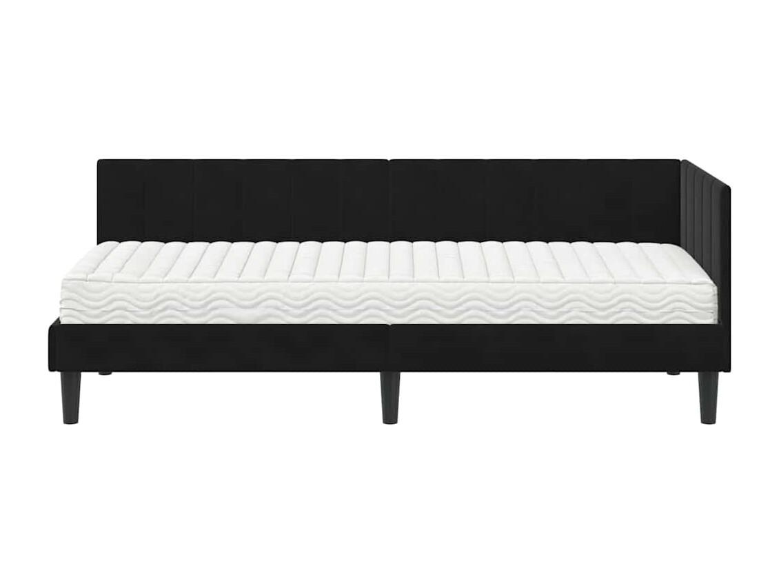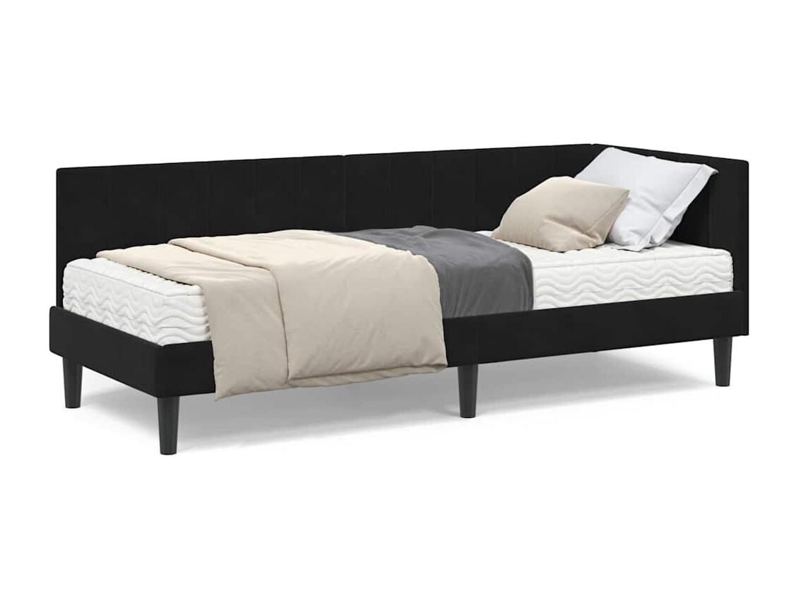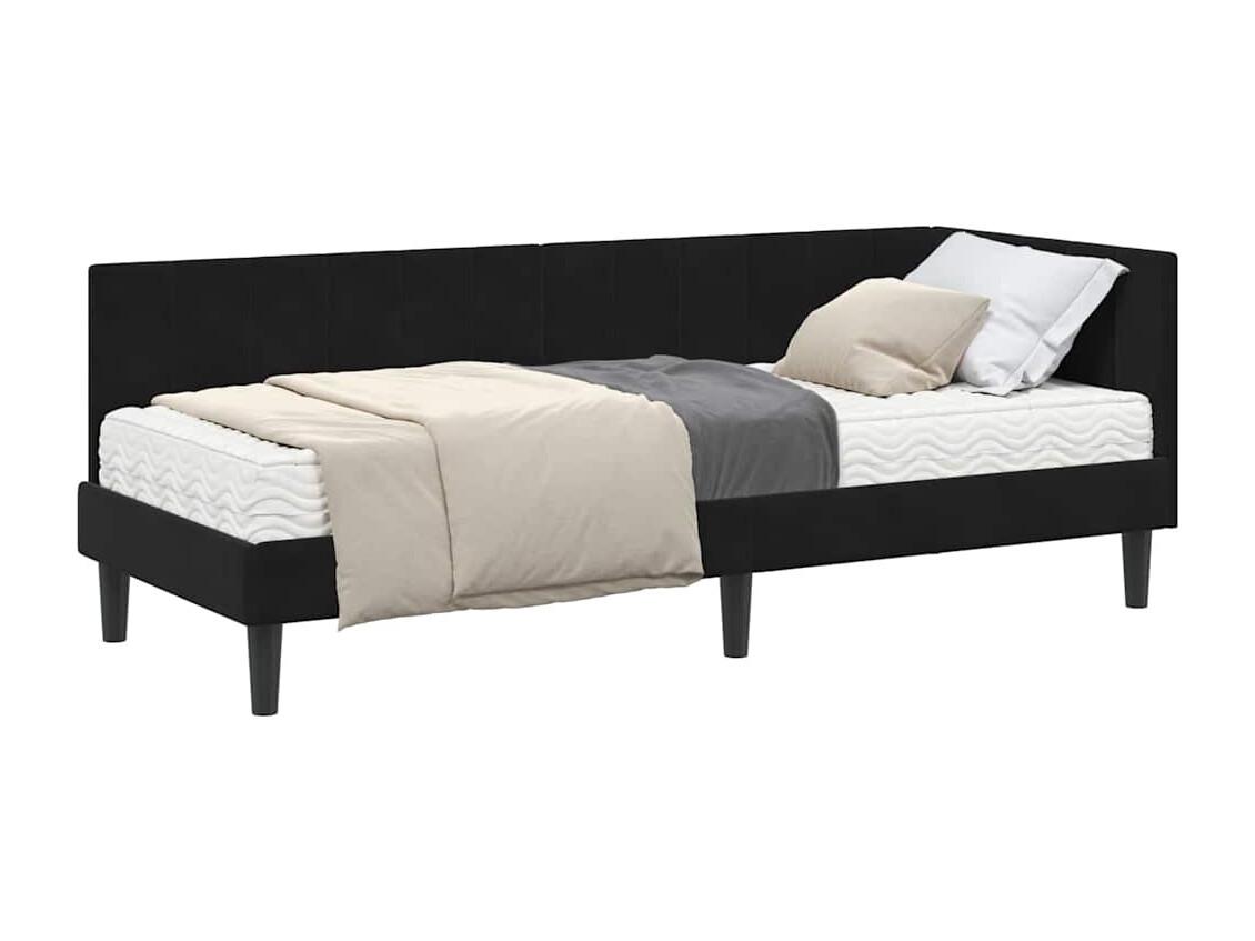 Cadre de lit d'angle avec matelas Noir 80 x 200 cm Velours