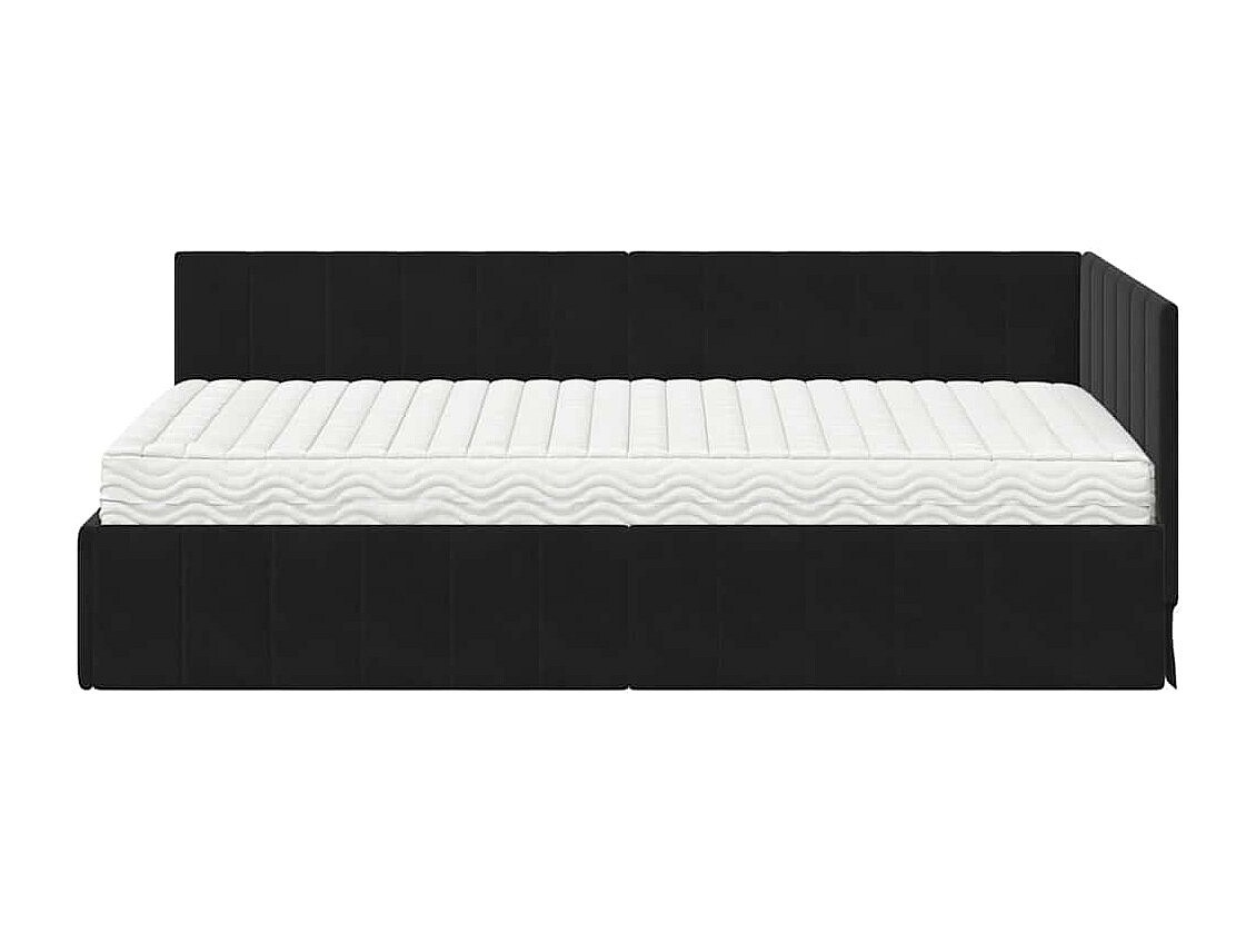 Cadre de lit d'angle avec matelas Noir 90 x 190 cm Velours