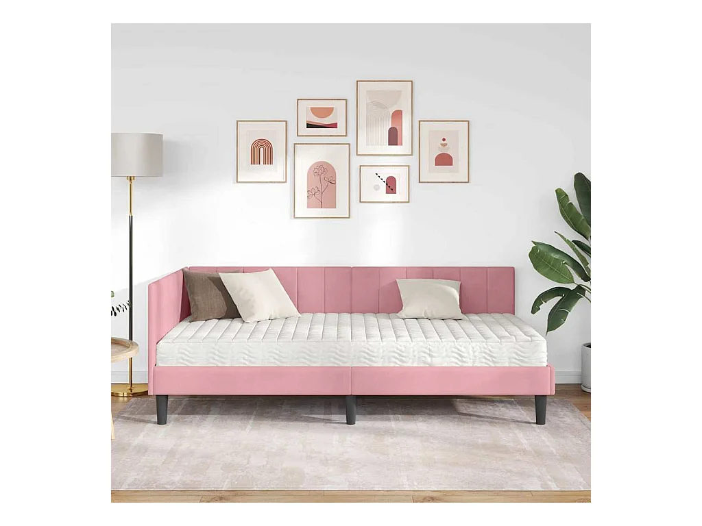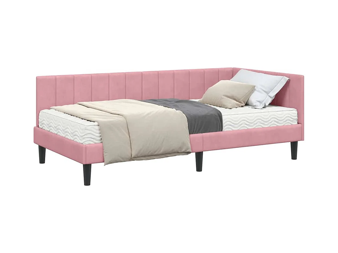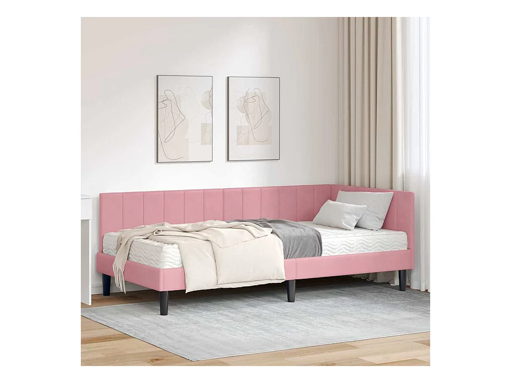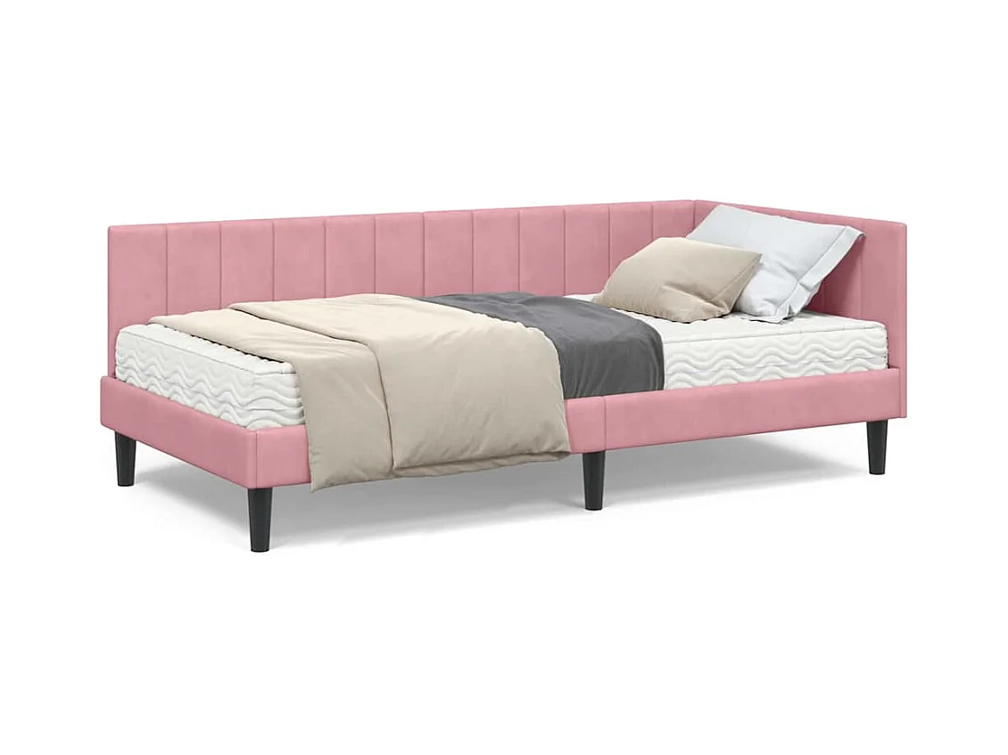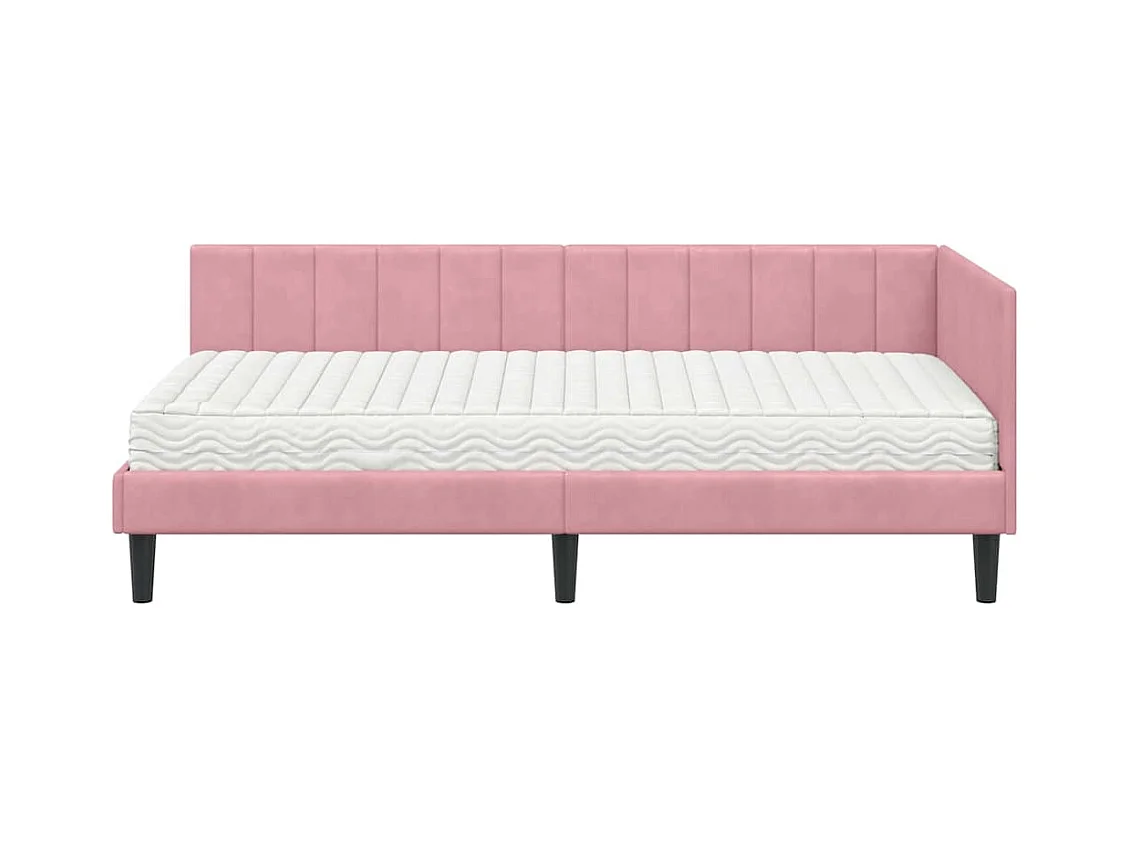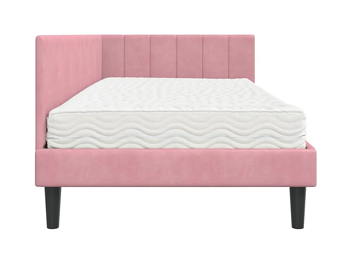 Cadre de lit d'angle avec matelas Rose 100 x 200 cm Velours