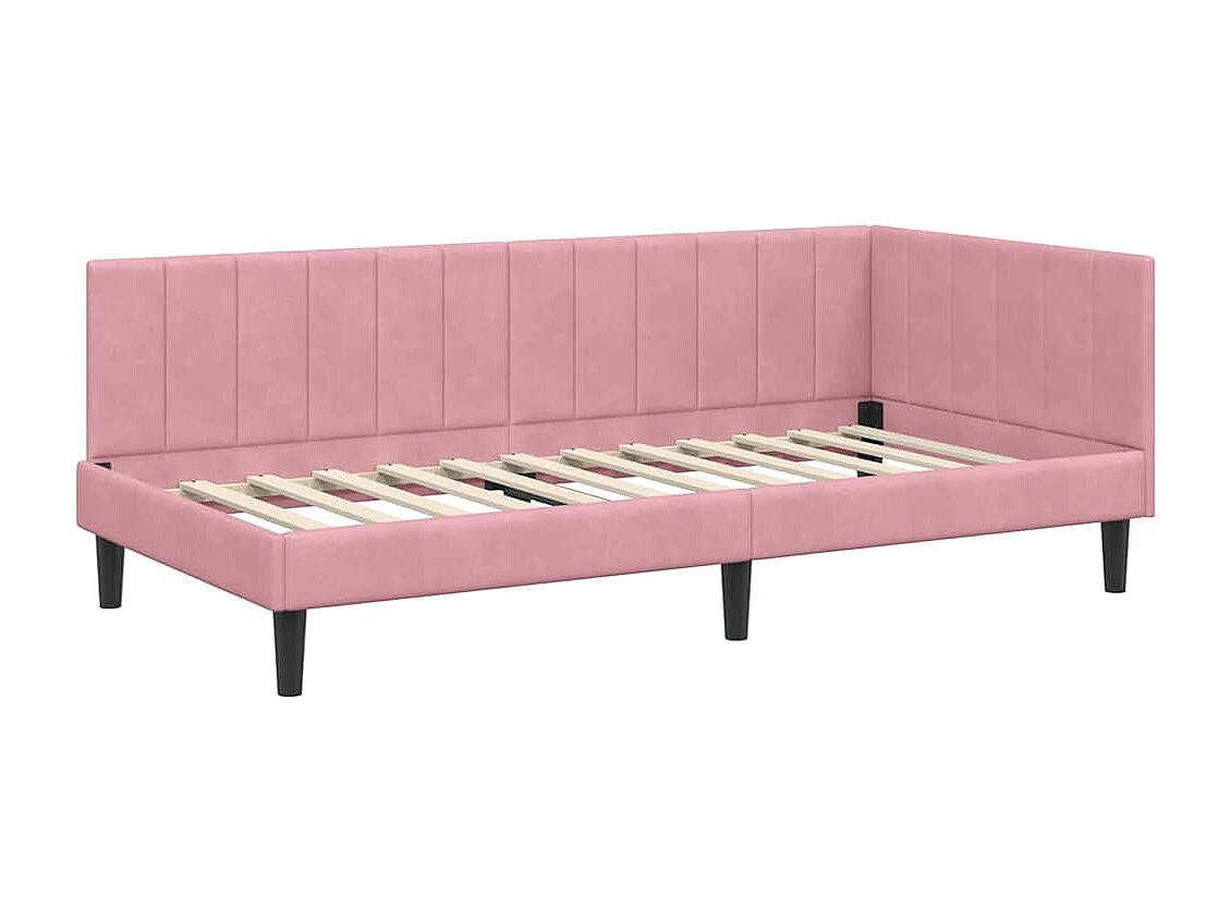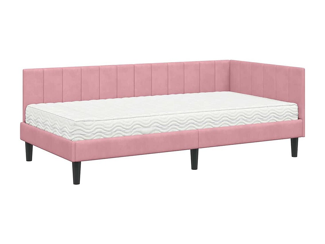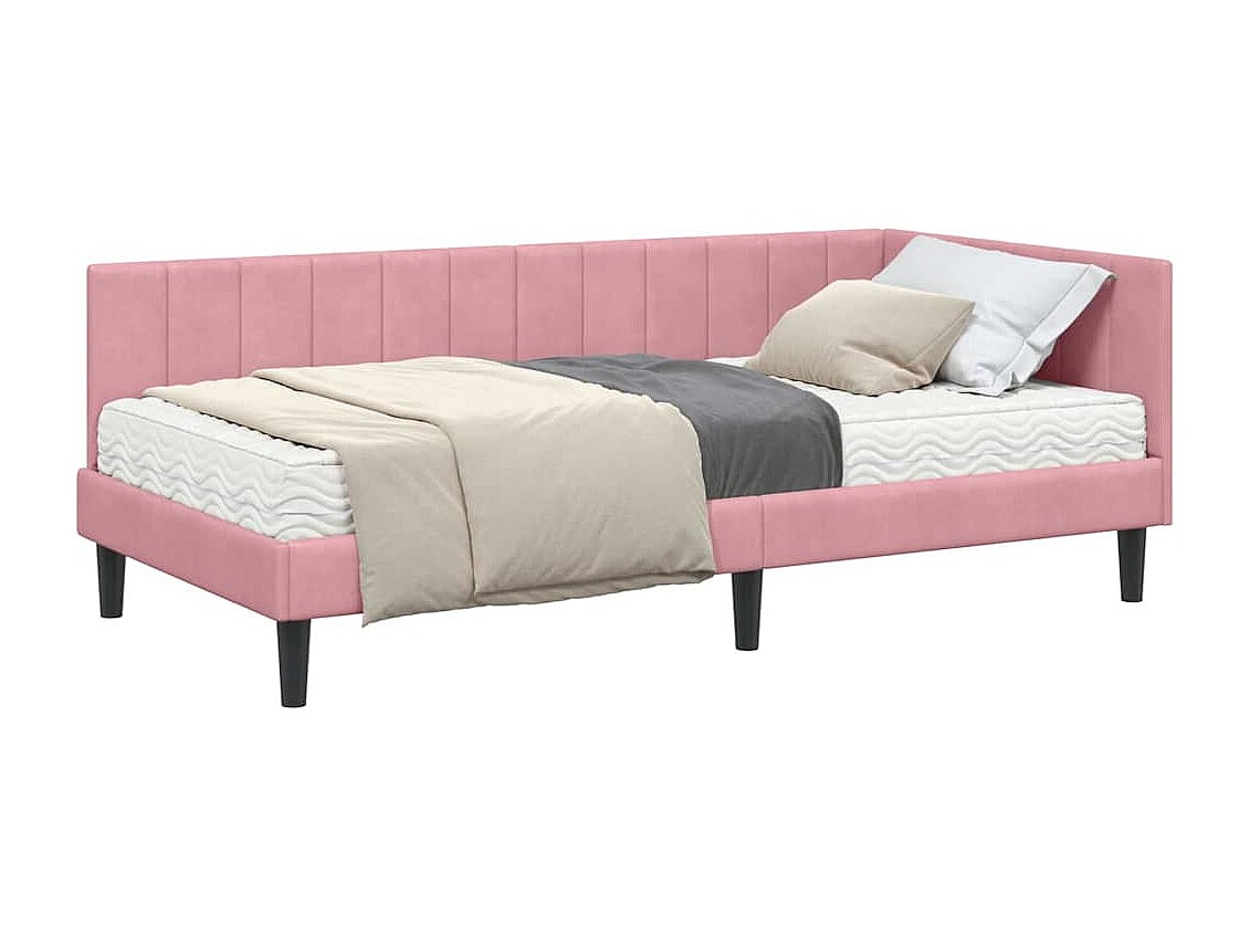 Cadre de lit d'angle avec matelas Rose 90 x 190 cm Velours