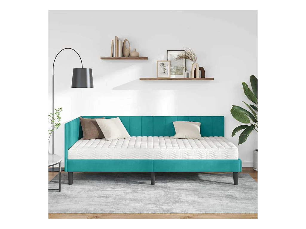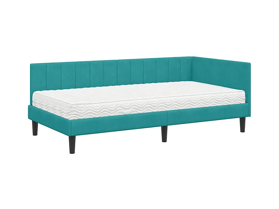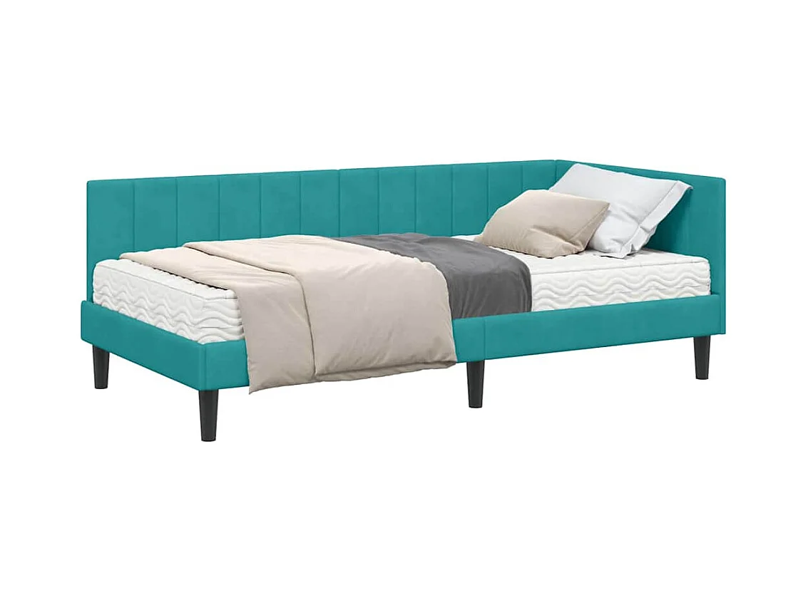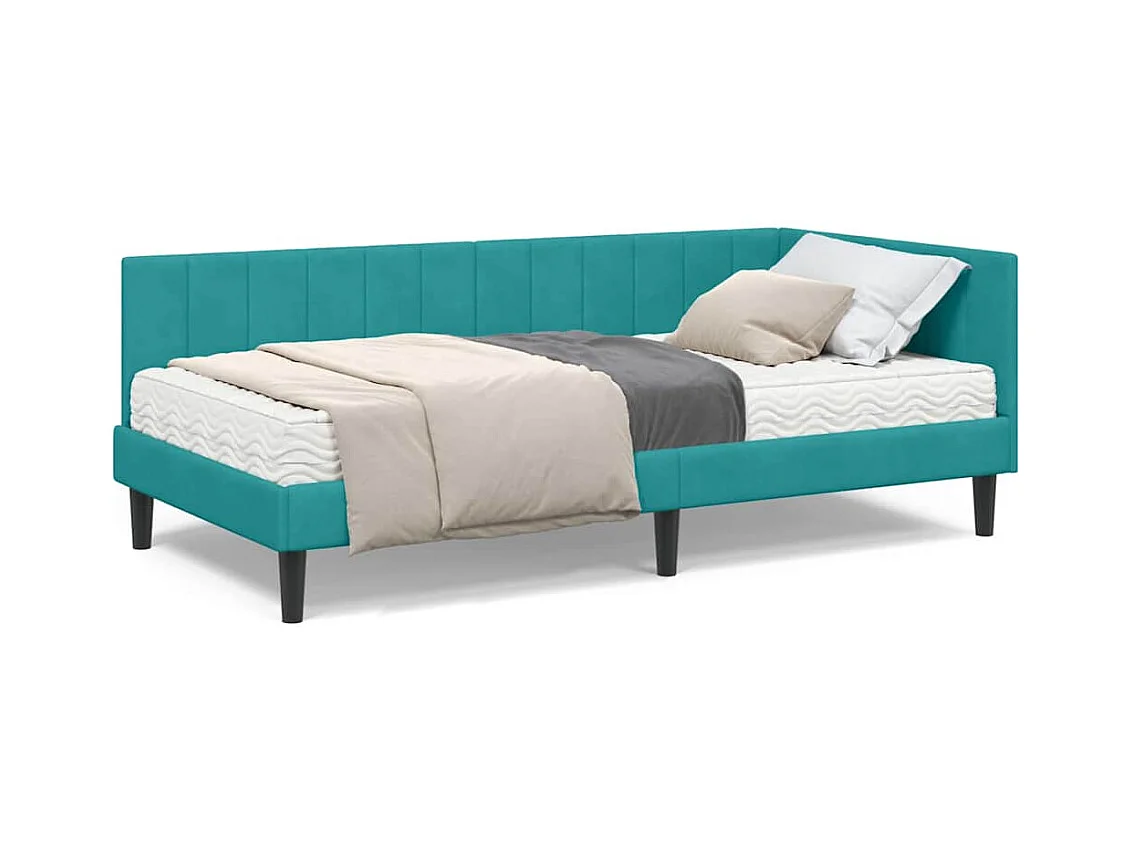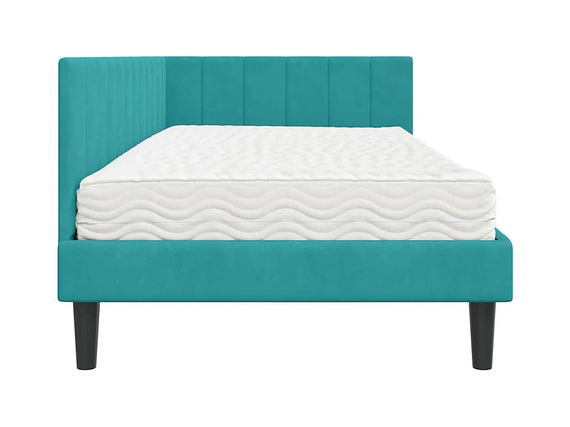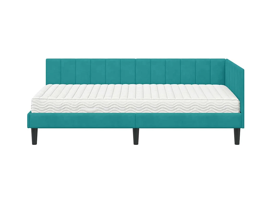 Cadre de lit d'angle avec matelas Turquoise 90 x 190 cm Velours