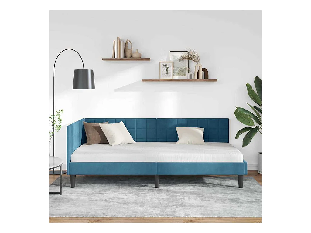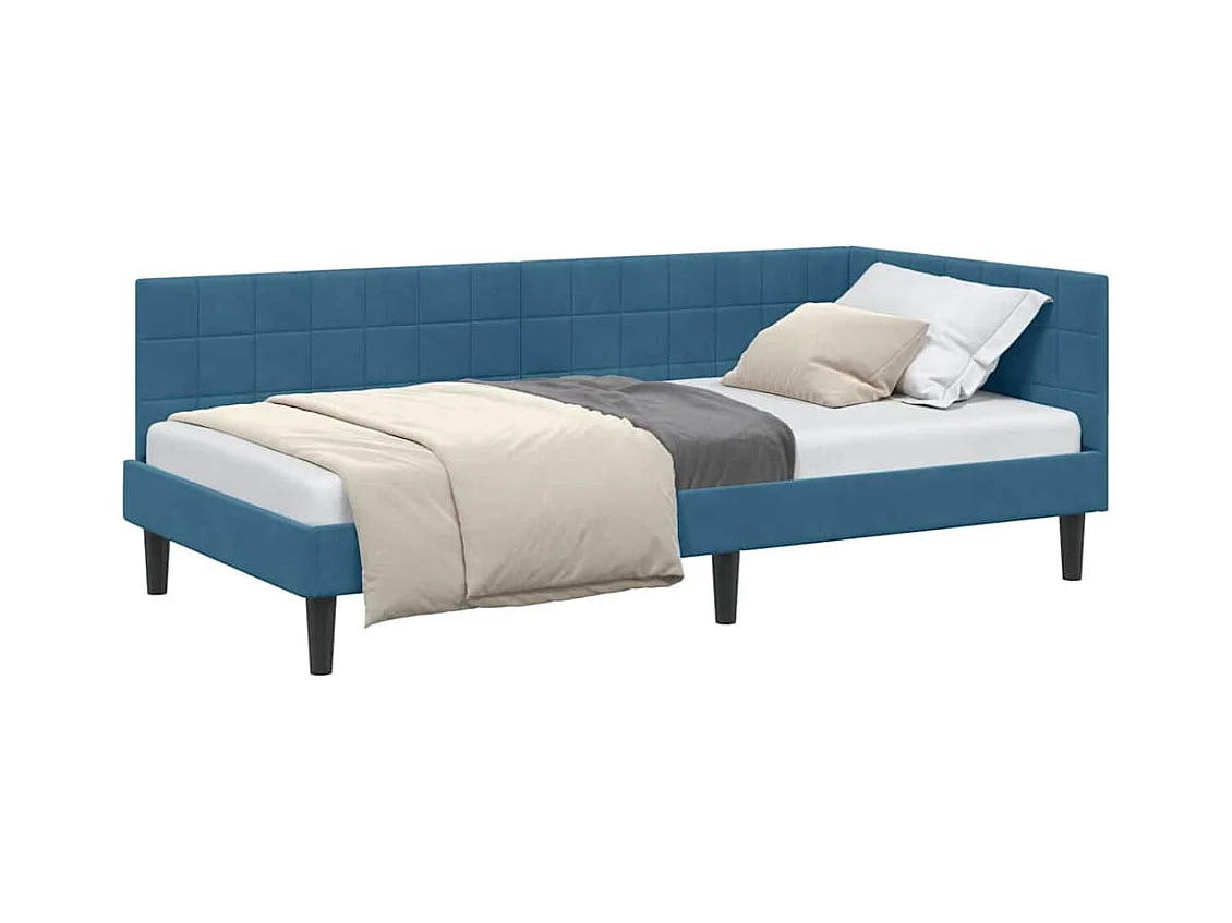 Cadre de lit d'angle avec tête de lit Bleu 100 x 200 cm Velours