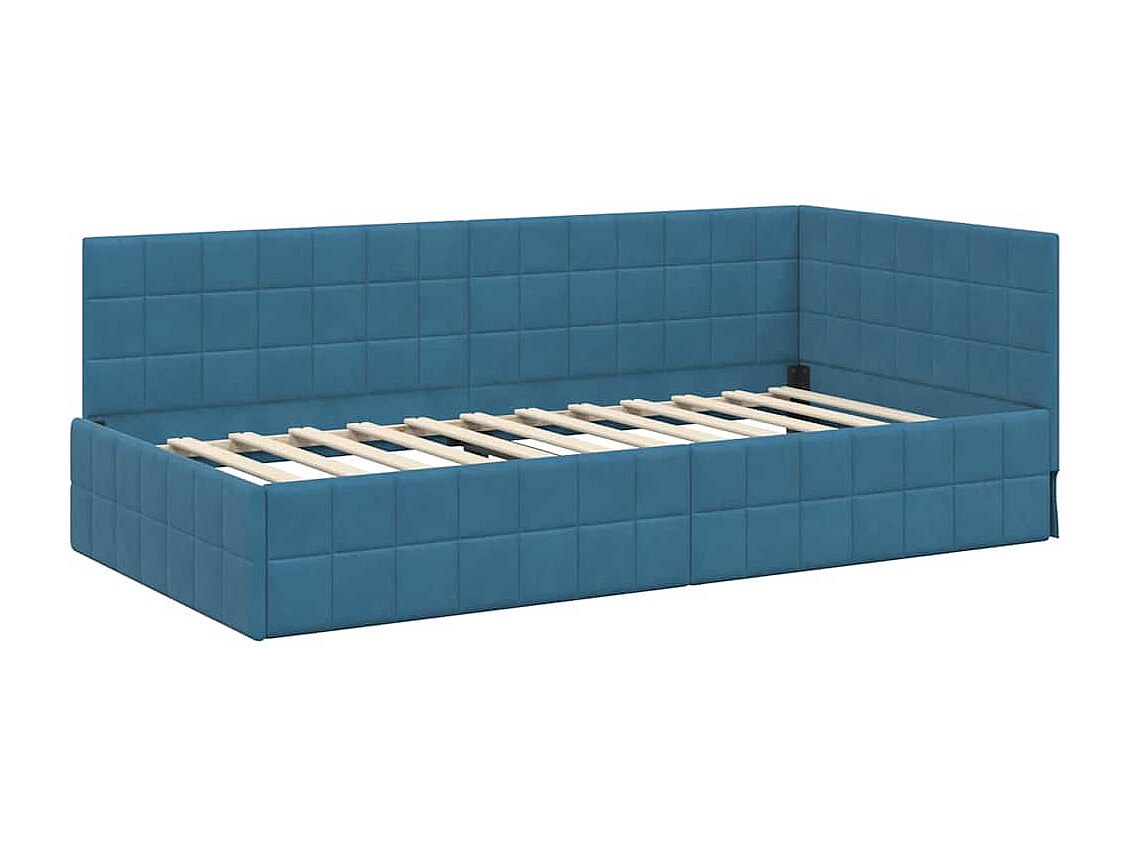 Cadre de lit d'angle avec tête de lit Bleu 90 x 190 cm Velours