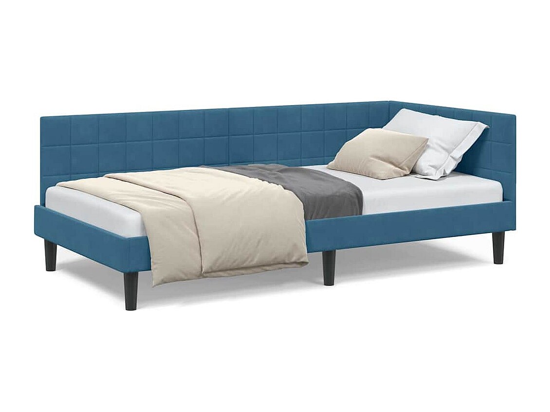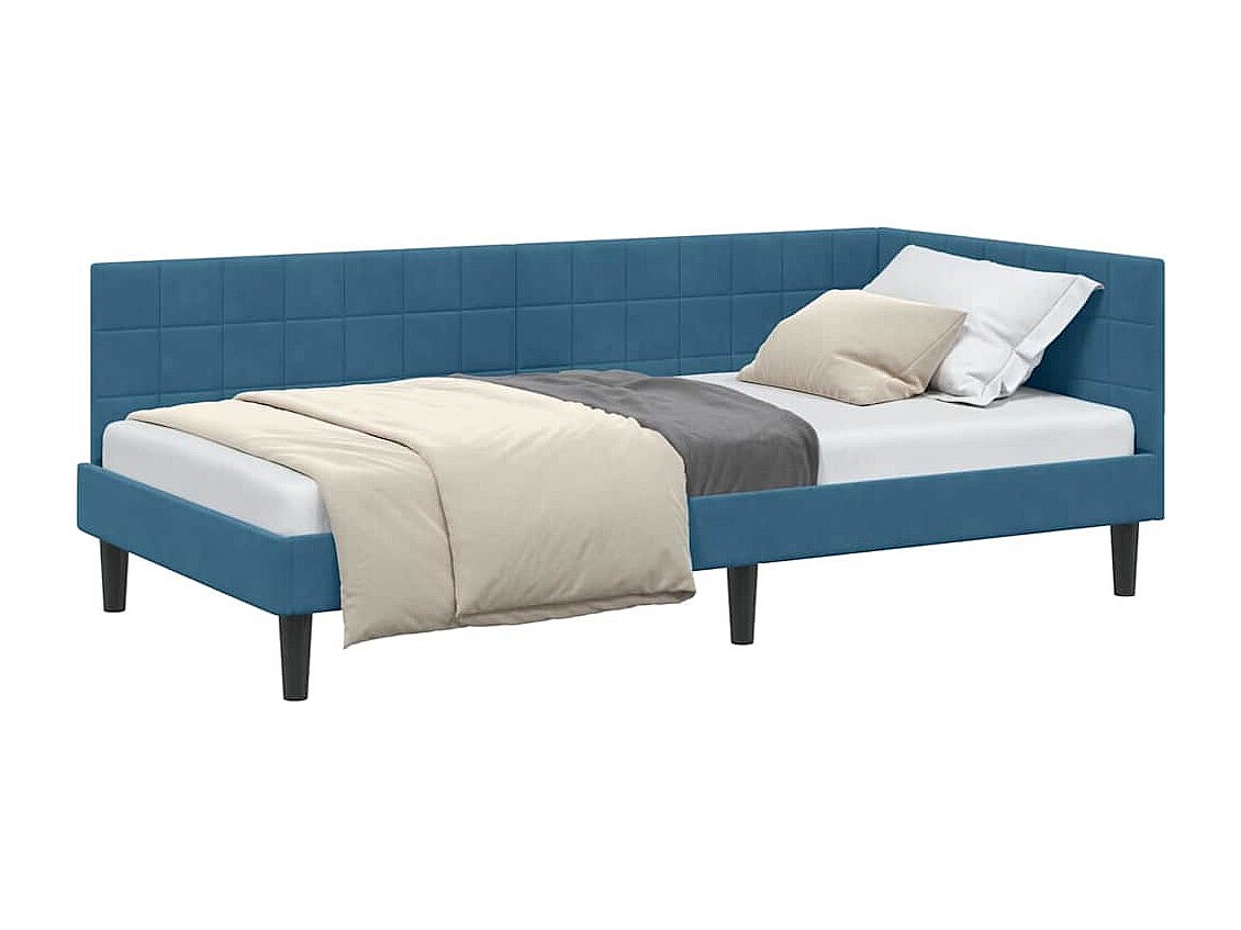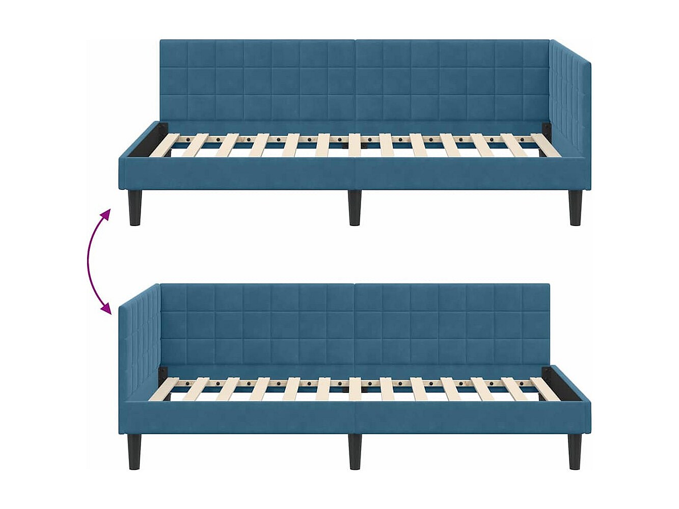 Cadre de lit d'angle avec tête de lit Bleu 90 x 200 cm Velours