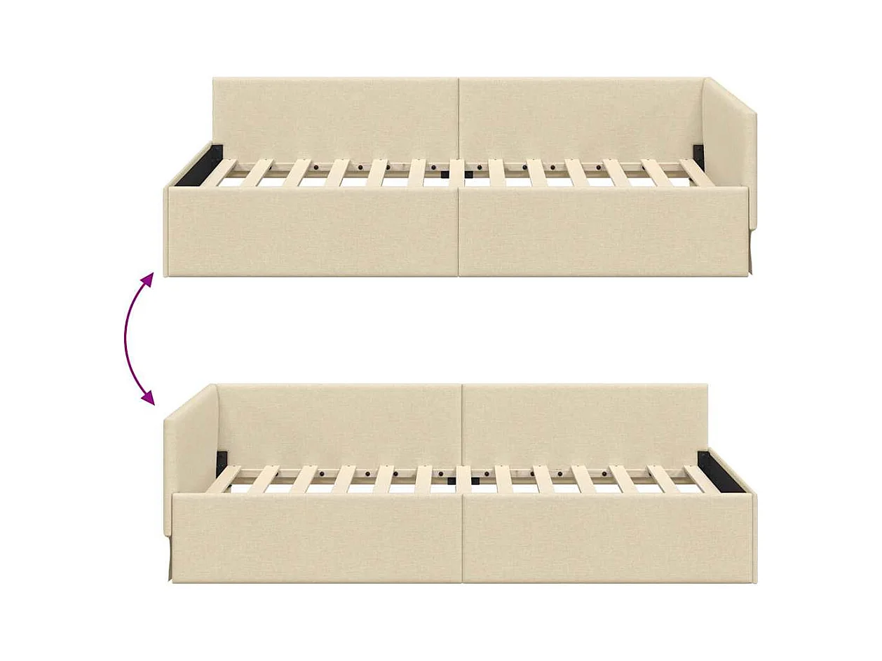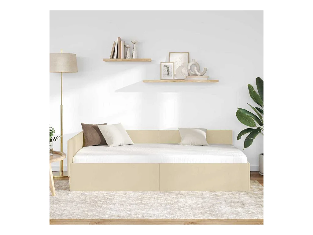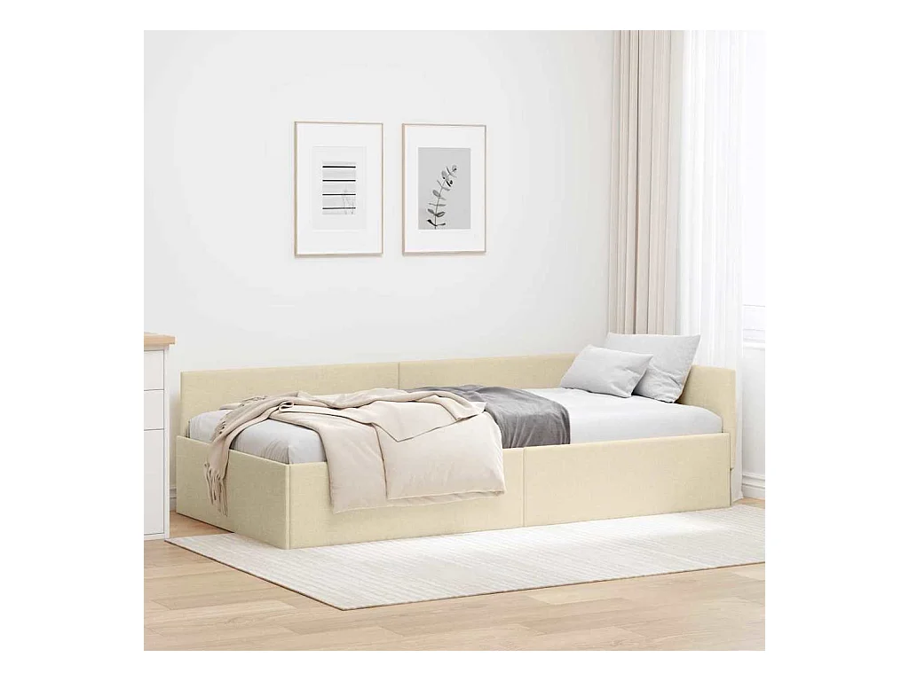 Cadre de lit d'angle Autre avec tête de lit Crème 100 x 200 cm