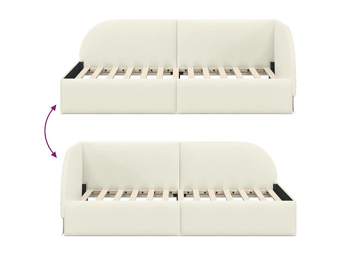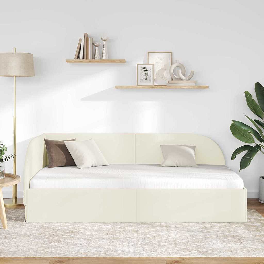 Cadre de lit d'angle avec tête de lit Crème 90 x 200 cm Velours