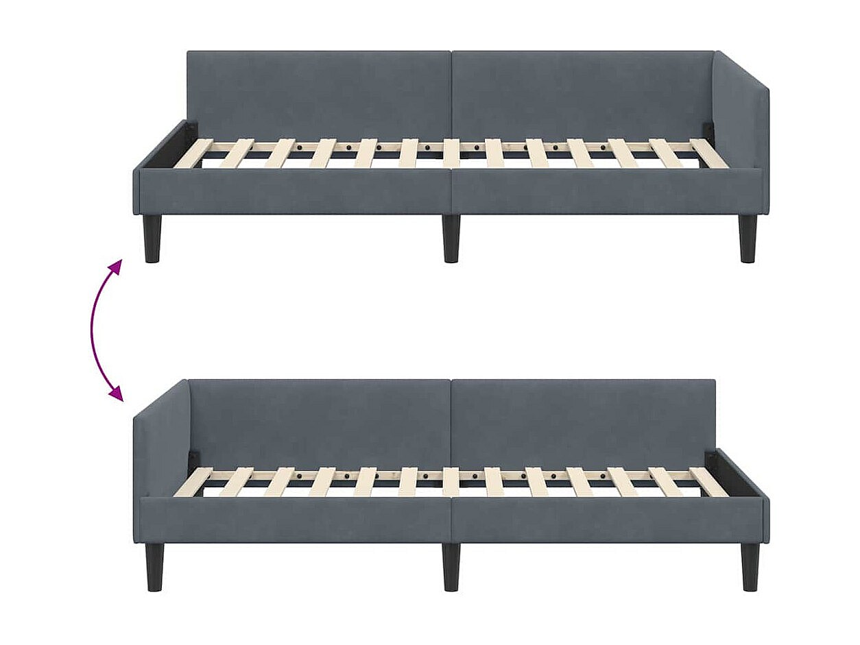 Cadre de lit d'angle avec tête de lit Gris foncé 90 x 200 cm