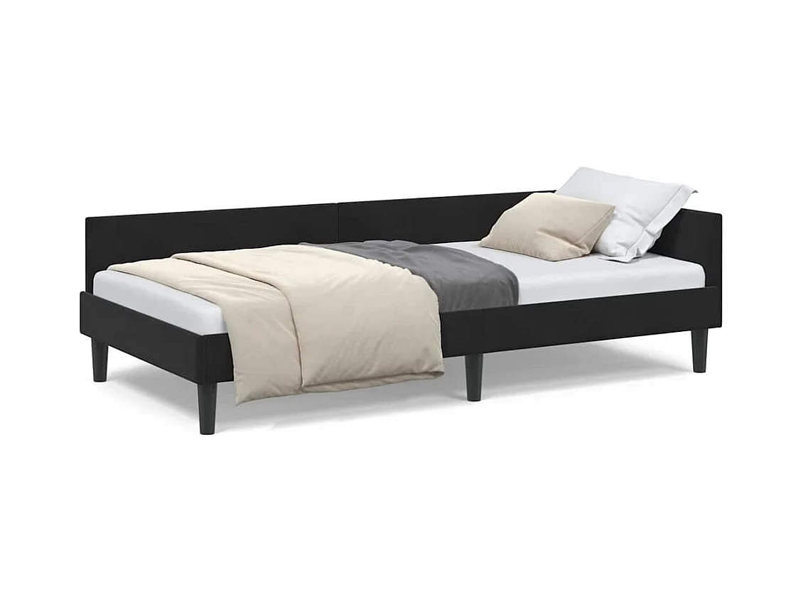 Cadre de lit d'angle avec tête de lit Noir 100 x 200 cm tissu