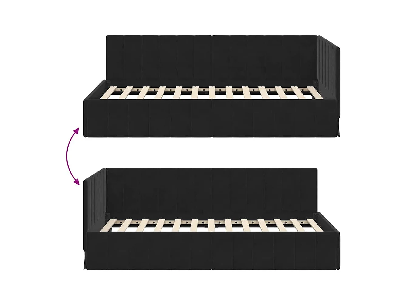 Cadre de lit d'angle avec tête de lit Noir 100 x 200 cm Velours