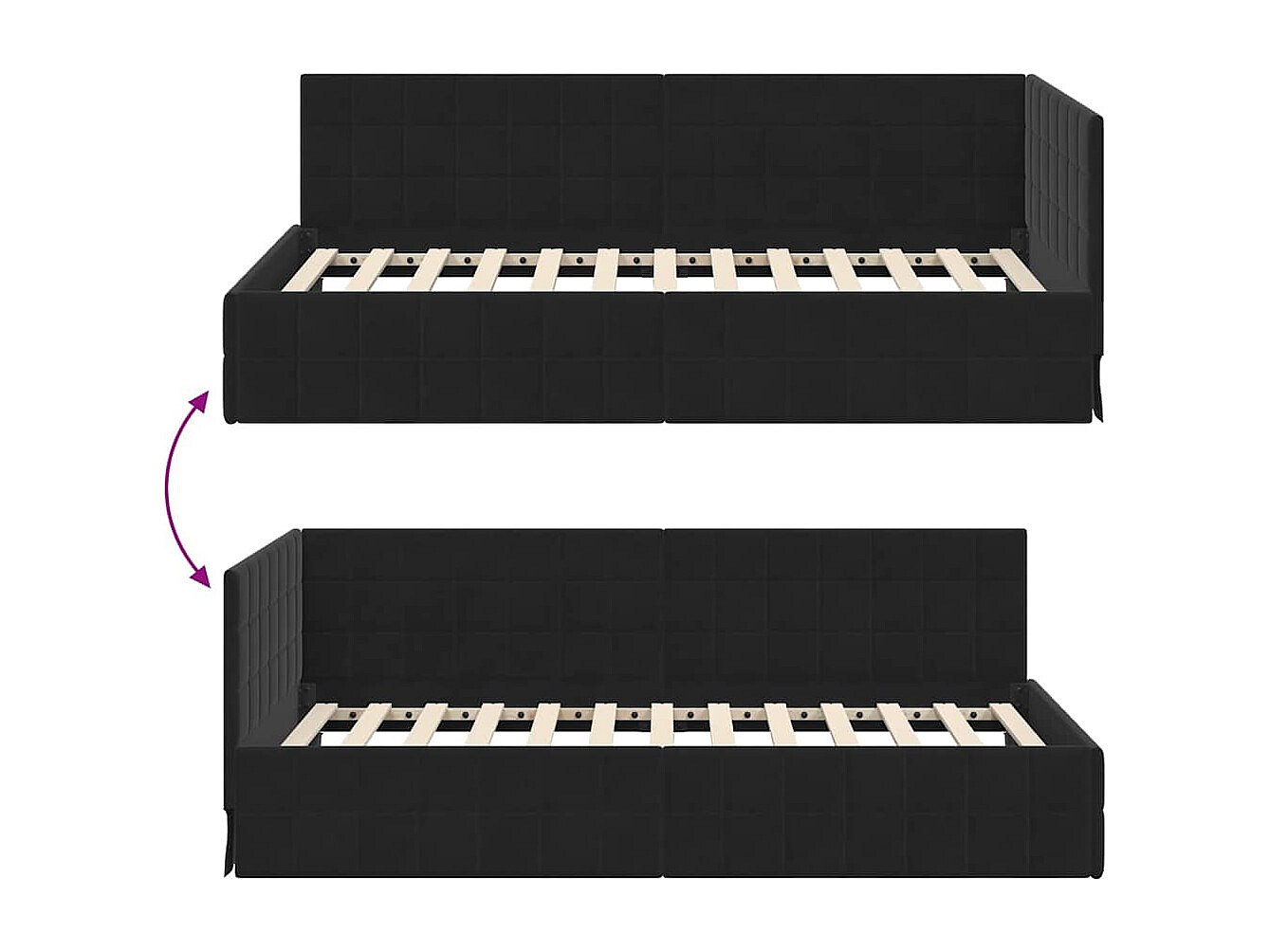 Cadre de lit d'angle avec tête de lit Noir 100 x 200 cm Velours