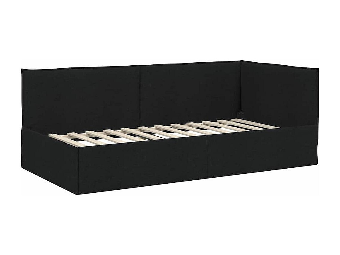 Cadre de lit d'angle avec tête de lit Noir 90 x 200 cm tissu