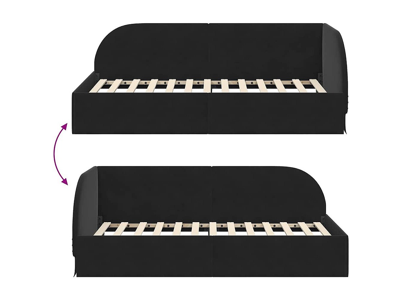 Cadre de lit d'angle avec tête de lit Noir 90 x 200 cm Velours
