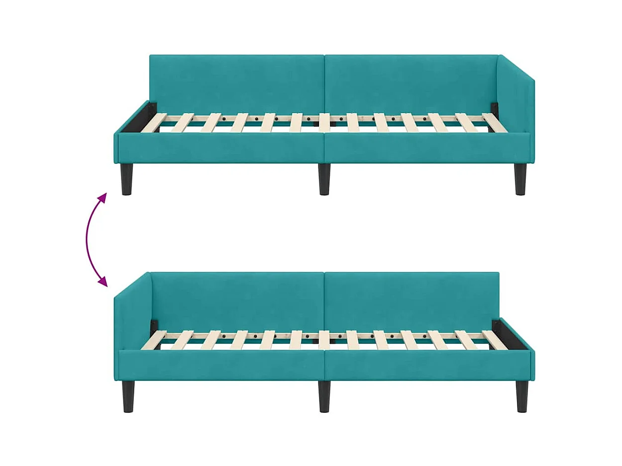 Cadre de lit d'angle avec tête de lit Turquoise 90 x 200 cm