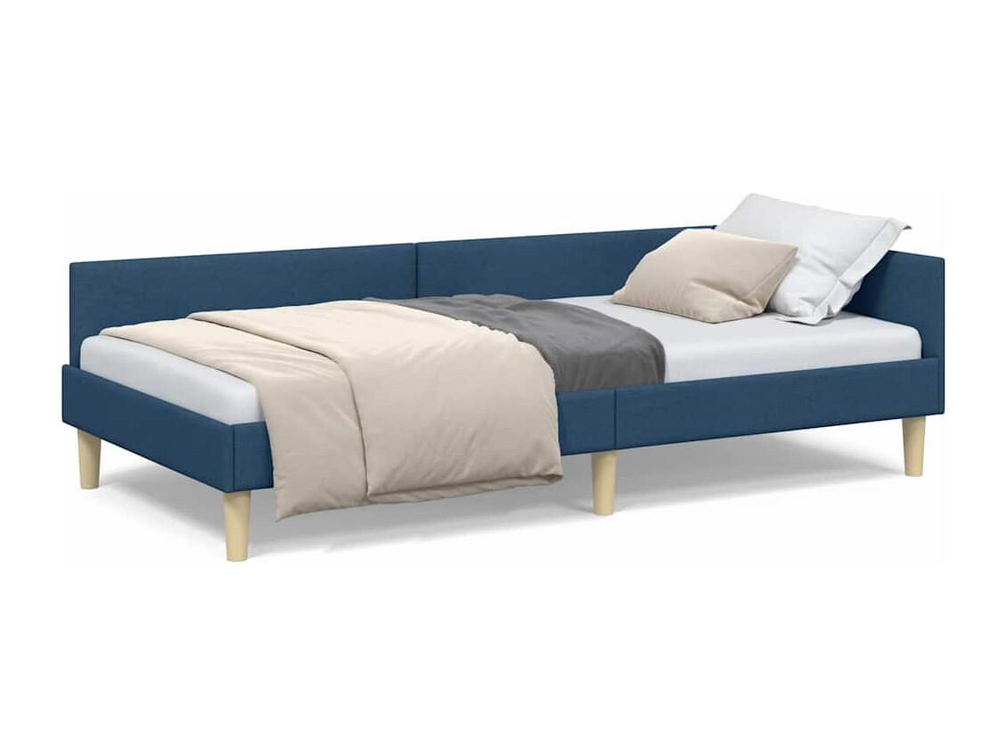 Cadre de lit d'angle Bleu 90 x 190 cm Tissu et bois reconstitué