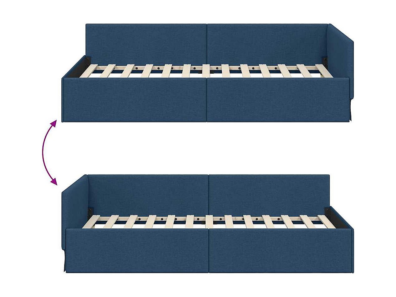 Cadre de lit d'angle Bleu 90 x 200 cm Tissu et bois reconstitué