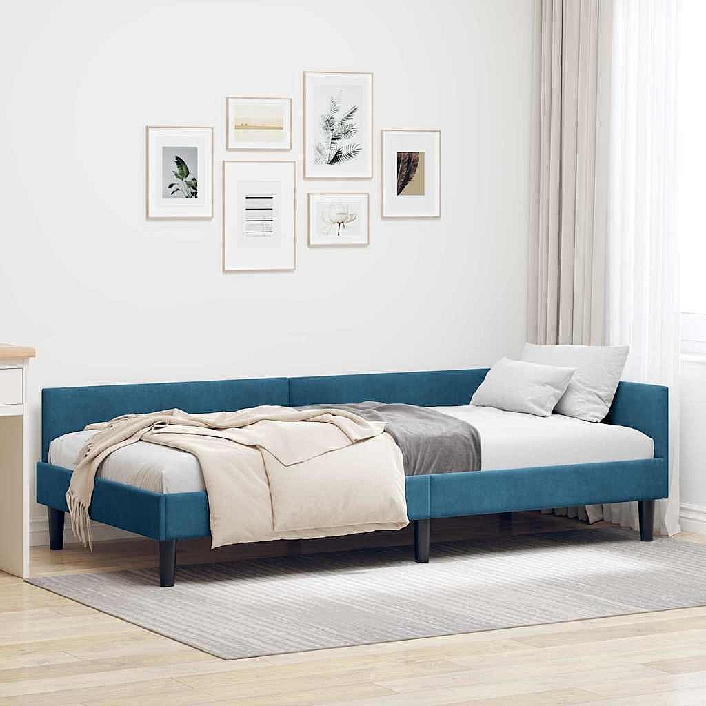 Cadre de lit d'angle Bleu 90 x 200 cm Velours et bois stratifié