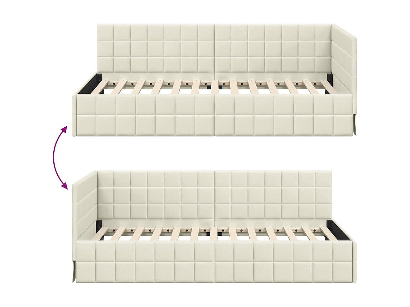Cadre de lit d'angle Crème 100 x 200 cm Velours