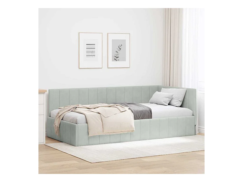 Cadre de lit d'angle Gris clair 90 x 190 cm Velours
