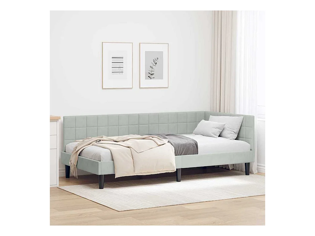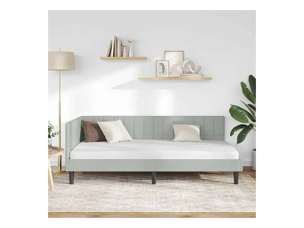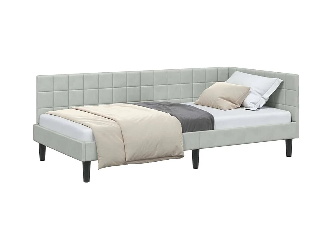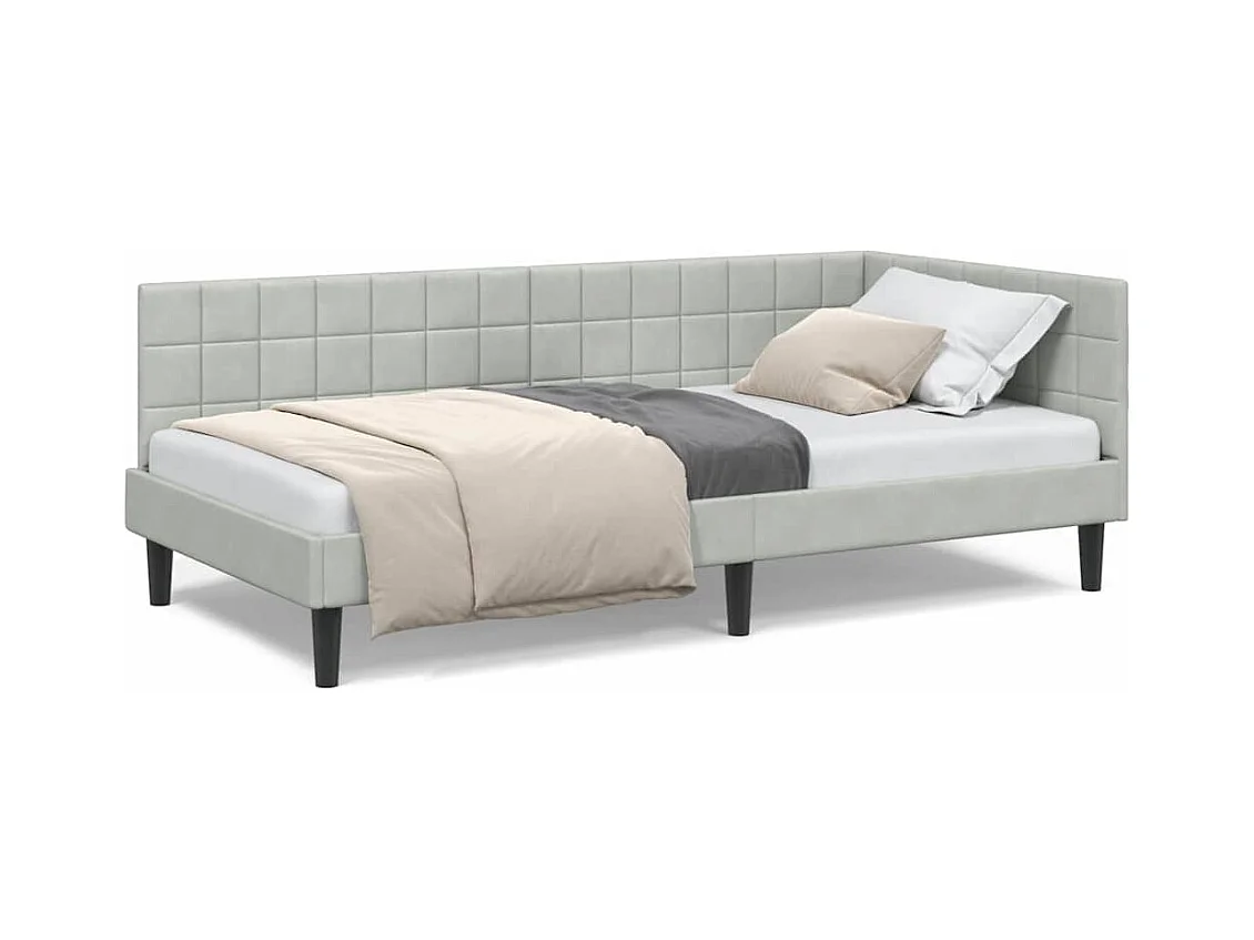 Cadre de lit d'angle Gris clair 90 x 200 cm Velours