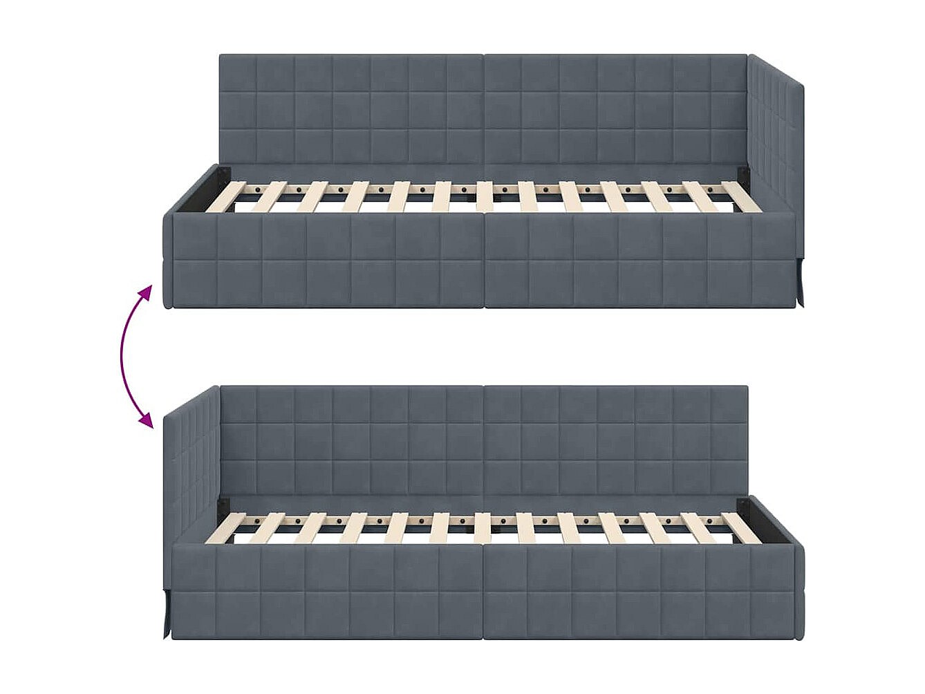 Cadre de lit d'angle Gris foncé 90 x 190 cm Velours