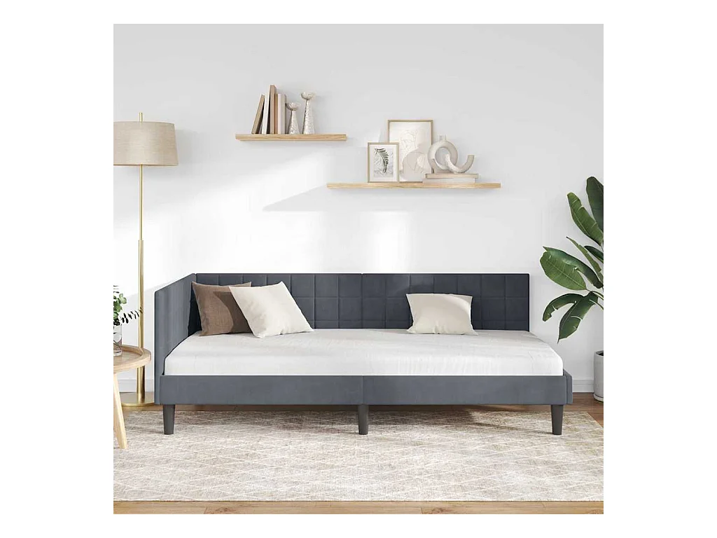 Cadre de lit d'angle Gris foncé 90 x 200 cm Velours